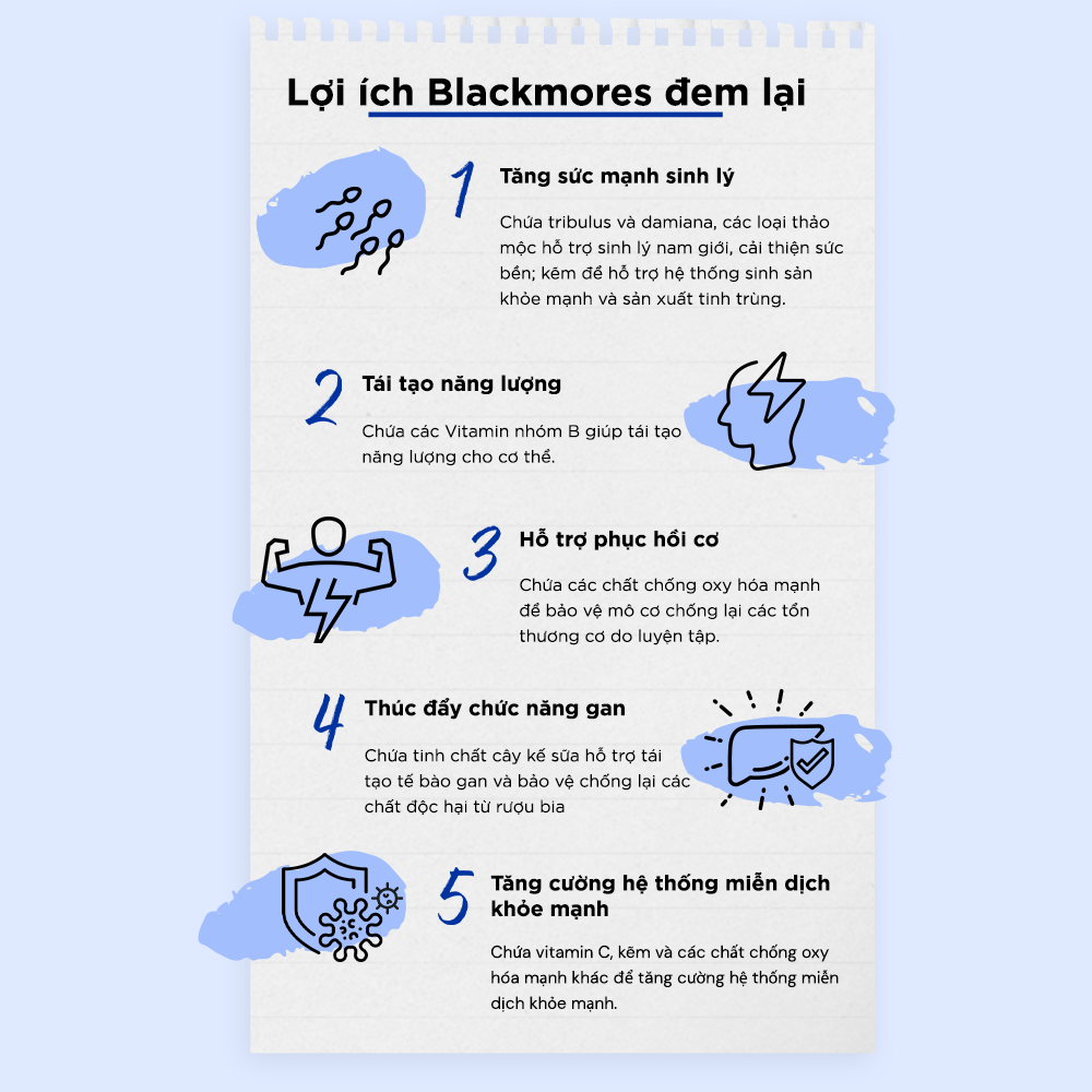 Blackmores là công ty dẫn đầu trong lĩnh vực chăm sóc sức khoẻ từ thiên nhiên của Úc được thành lập vào năm 1930. Dựa trên tầm nhìn và niềm đam mê của ông Maurice Blackmore – người sáng lập thương hiệu – Blackmores luôn nỗ lực tạo ra những sản phẩm bảo vệ sức khỏe từ các loại thảo mộc tự nhiên. Không chỉ gây ấn tượng về bề dày lịch sử và sự phát triển ổn định của công ty, Blackmores còn nỗ lực tạo ra nhiều hơn giá trị cộng đồng như bảo vệ môi trường, hỗ trợ cho cộng đồng, thúc đẩy tư duy đầu tư để có một cơ thể khỏe mạnh. Đến nay, Blackmores vẫn không ngừng nghiên cứu, tìm tòi để phát triển các sản phẩm mới nhằm mang đến sự chăm sóc tốt hơn cho sức khỏe khách hàng .