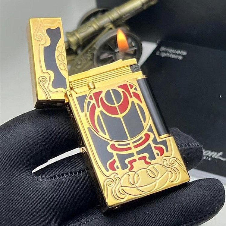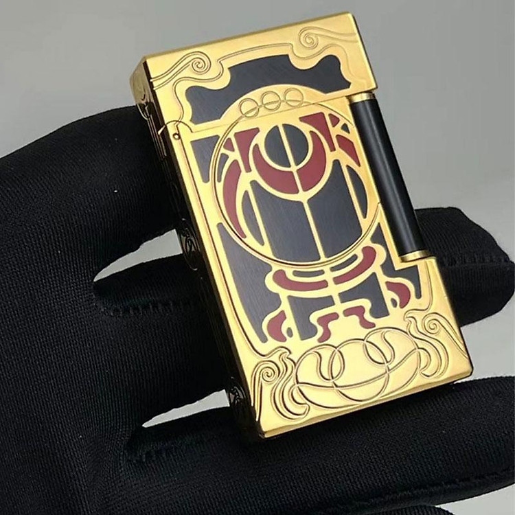 ✨Vỏ Hột Quẹt Bật Lửa Gas Đá S.T Upon D253V Finorio Manor Thiết Kế Họa Tiết Sơn Mài Đen Viền Vàng