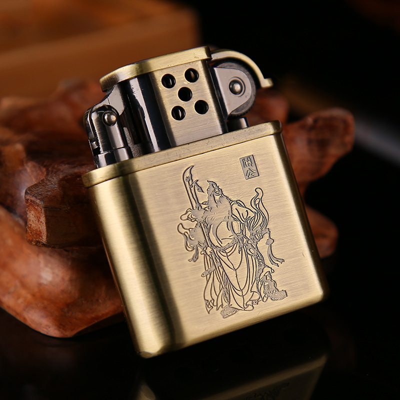 ✨Vỏ Hột Quẹt Bật Lửa Xăng Đá Độc Lạ Dolphin HY676 Khắc Quan Vũ Đẹp Độc Lạ - Dùng Xăng Bấc Đá Cao Cấp