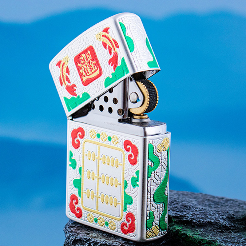 ✨Vỏ Hột Quẹt Bật Lửa Xăng Đá Zorro Z2-1150 Họa Tiết Bàn Tính và Cá Chép Tài Lộc May Mắn Phát Tài - Mẫu Mới