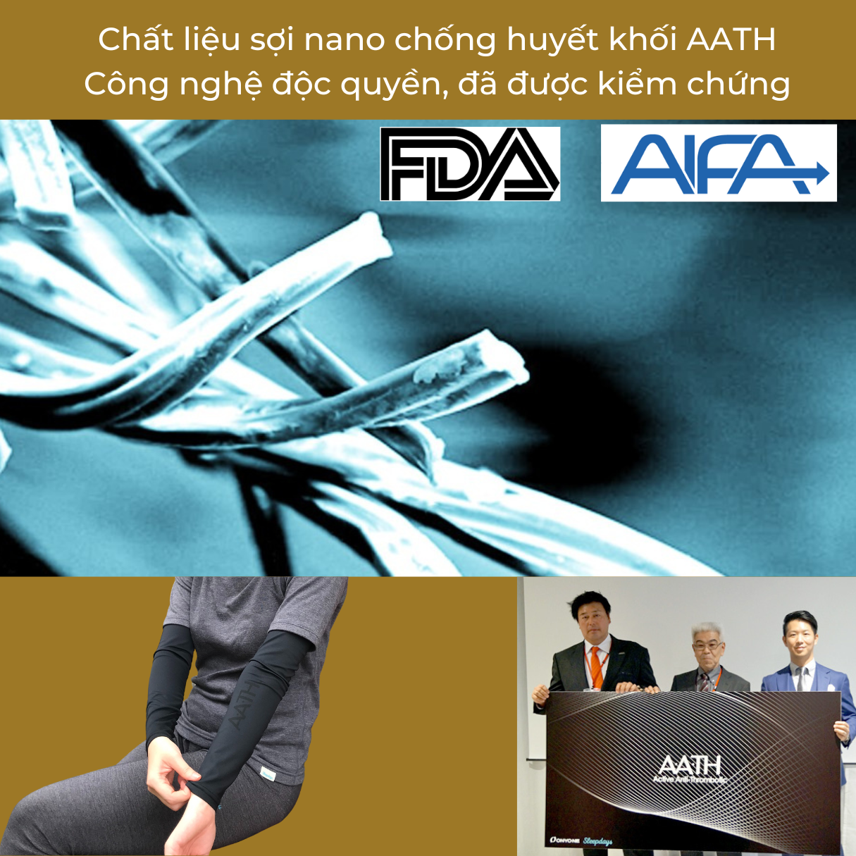 - Tất ống tay nano AATH rất thời trang, tiện dụng và cho hiệu quả cải thiện sức khỏe đôi tay, xuất xứ Nhật Bản chất liệu đặc biệt sợi nano chống huyết khối A.A.TH, có các lợi ích sau: Tính năng chung: cải thiện lưu thông máu, chống huyết khối, giảm đau nhức, giảm viêm sưng, giúp hồi phục vùng tay. Giúp cải thiện, ngăn ngừa các vấn đề do giãn tĩnh mạch tay, viêm khớp, thoái hóa khớp tay và lưu thông máu kém ở tay: tê nhức, chuột rút/vọp bẻ, đau mỏi, nặng tay, lạnh tay, sưng nhức, giúp ngủ ngon hơn. Chống huyết khối tĩnh mạch; cải thiện và ngăn ngừa viêm tắc mạch máu vùng tay. Cải thiện giãn cơ tay, đau mỏi cơ tay, viêm cơ tay,
