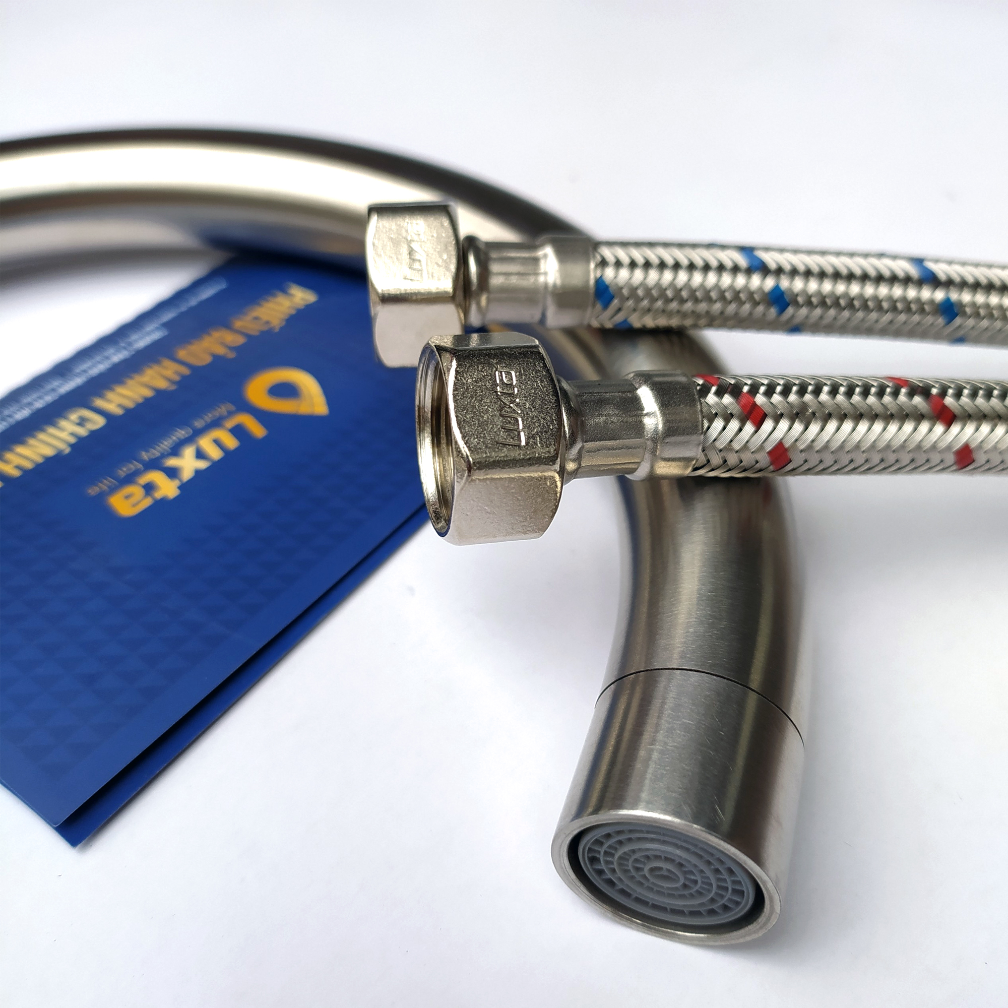 MẪU 01: Mã L3203B, Vòi Nóng Lạnh gắn chậu, thân vòi lò xo, uốn dẻo, chất liệu Đồng thau mạ Crome, tặng cặp dây cấp.