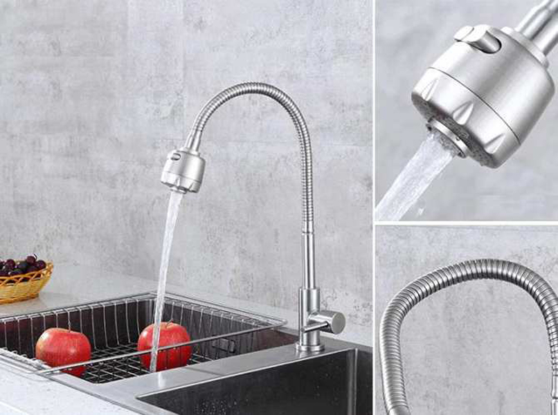 Mua tại Tiktok· Vòi rửa chén lạnh cầm mềm Inox 304 thiết kế với ống bẻ mềm có thể điều chỉnh hướng, độ cao, độ ngả linh hoạt.