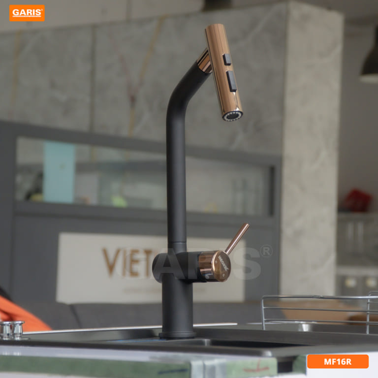 Vòi rửa MF16R thiết kế độc quyền trên toàn thế giới. Duy nhất tại Việt Nam dùng đồng thời 3 linh kiện của các hãng trứ danh trên thế giới: đầu vòi và dây cấp Neoperl (Thụy Sỹ), lõi trộn nóng lạnh Sedal (Tây Ban Nha), chịu nhiệt độ 140ºC trong thời gian dài.