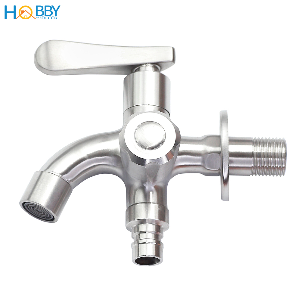 Vòi nước đôi 2 đầu ra Inox 304, vòi hồ 2 đầu xả nước