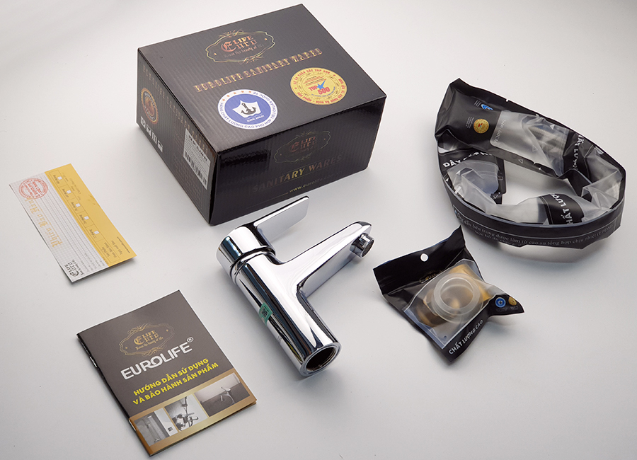 Tay cầm dày và chắc chắn, giúp đóng mở nguồn nước dễ dàng. Logo Eurolife được in trên tay cầm cùng tem điện tử thông minh chống hàng giả, có thể truy xuất nguồn gốc được dán sau lưng sản phẩm