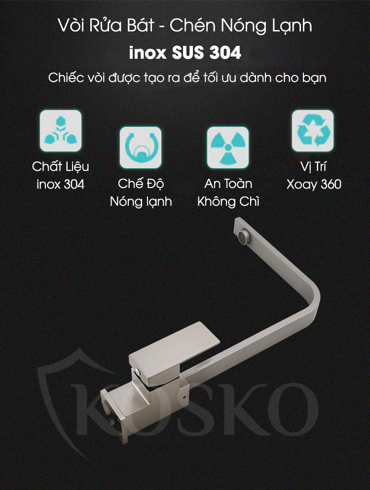 ✨Vòi nước rửa chén KOSKO inox 304, vòi rửa chén bát thân dẹt phù hợp với nhiều loại bồn rửa chén và chậu rửa bát chén khác nhau