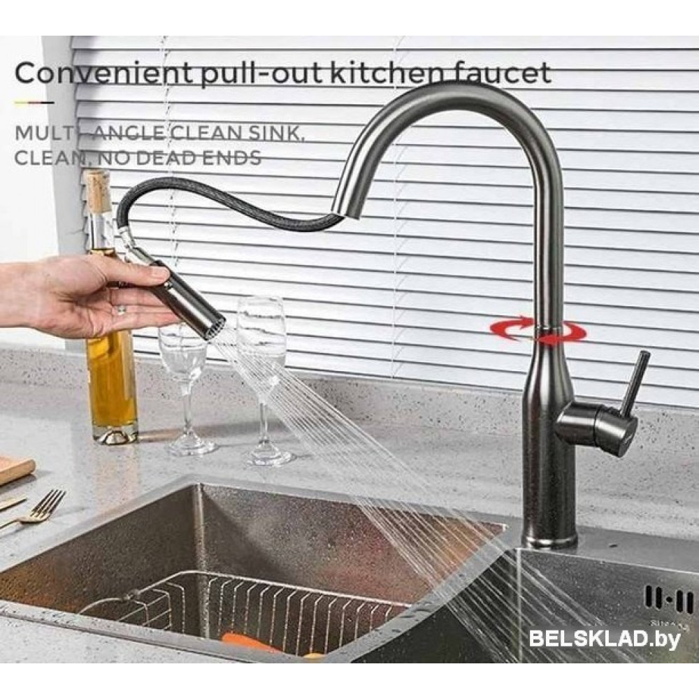 Mã sản phẩm: Artan Grey – Hình dáng: Vòi thiết kế bo tròn, đầu vòi ngang. Tay vòi ngang – Chức năng: Nóng lạnh + Rút dây + 2 chức năng Sprayer (Phun hoa sen,