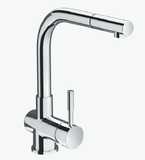 Mã sản phẩm: Ponte Chrome – Hình dáng: Vòi thiết kế bo tròn, đầu vòi cong. Một tay vòi nằm ngang – Chức năng: Nóng lạnh + Rút dây + Đầu vòi khớp xoay +