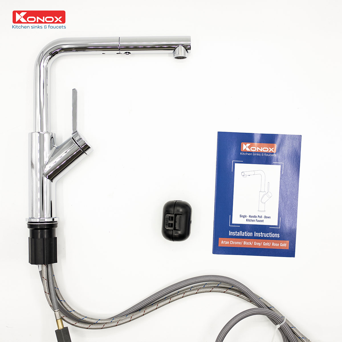 Mã sản phẩm: Artan Grey – Hình dáng: Vòi thiết kế bo tròn, đầu vòi ngang. Tay vòi ngang – Chức năng: Nóng lạnh + Rút dây + 2 chức năng Sprayer (Phun hoa sen,