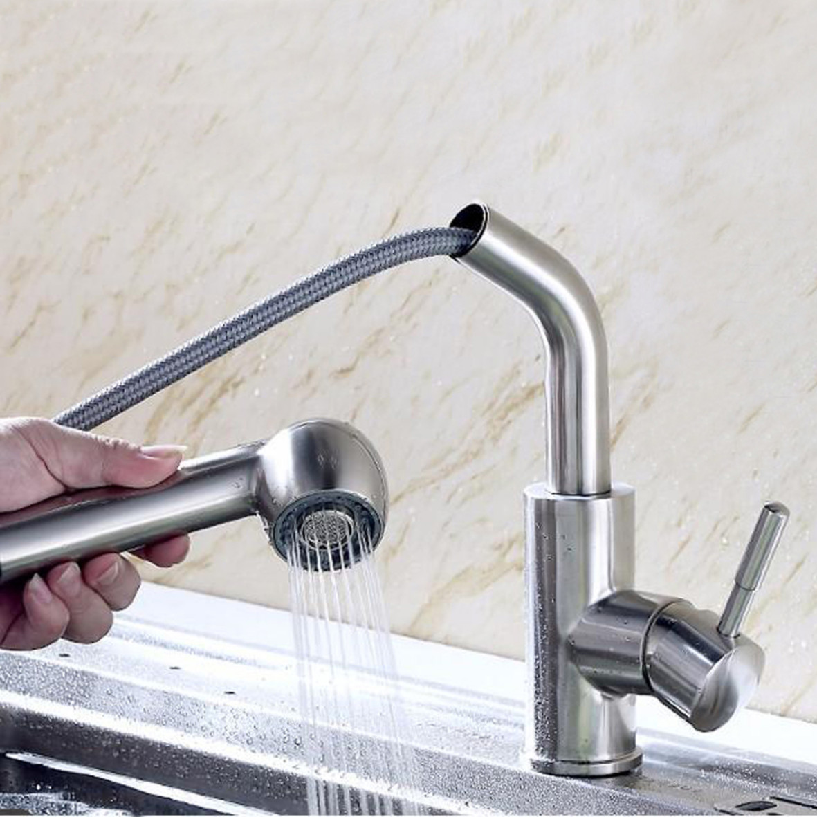 Vòi rửa bát nóng lạnh đầu dây rút, gồm có 2 lựa chọn như sau: Mẫu 1. Mã vòi dây rút R02H, chất liệu inox mờ bền bỉ (màu inox) Mẫu 2. Mã vòi dây