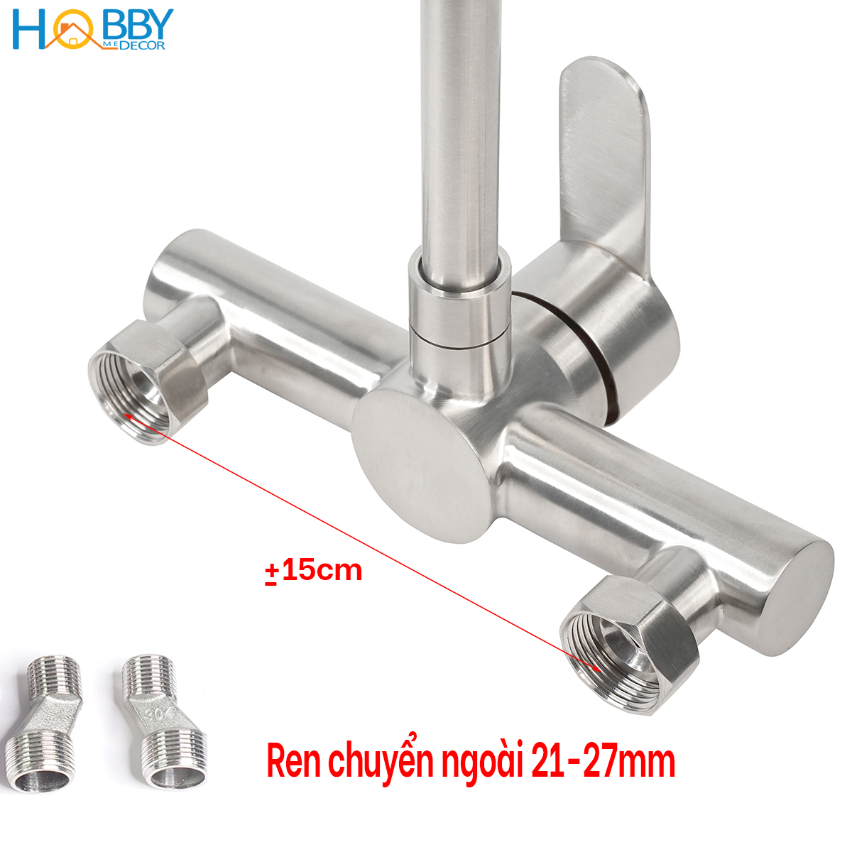 Ren cấp chờ 21mm (G1/2) hoặc ren trong chờ 27mm (có khớp chuyển)