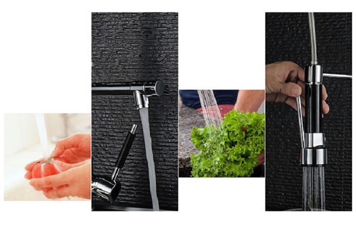 - Dây rút có thể kéo dài để vươn tới những vị trí xa mà vòi rửa bát thông thường không thể với tới.