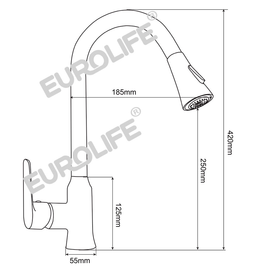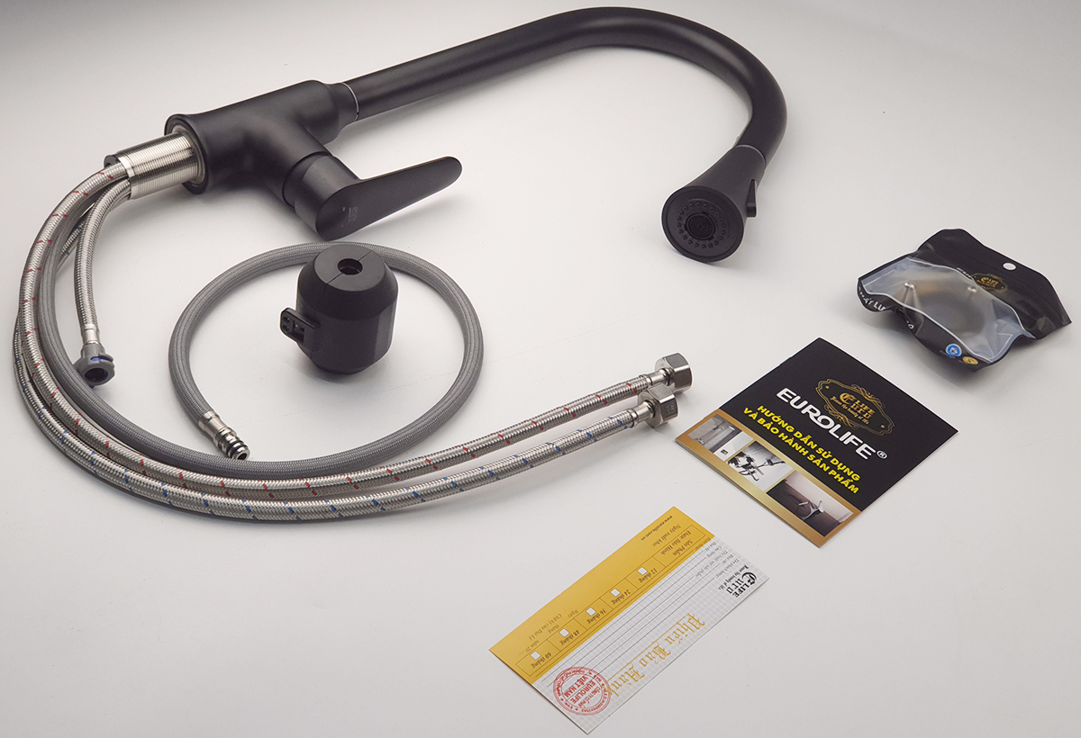 Vòi rửa chén nóng lạnh, dây kéo Inox SUS 304 Eurolife EL-T010 - Hãng sản xuất : Eurolife - Việt Nam - Trọng lượng : 1584 Grs - Chất liệu : Sản phẩm được đúc