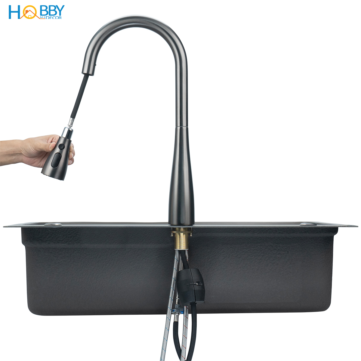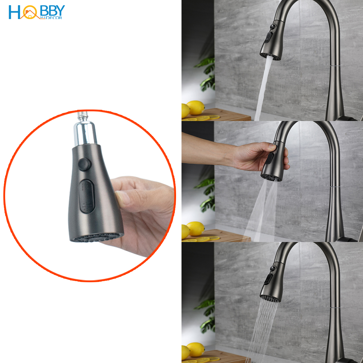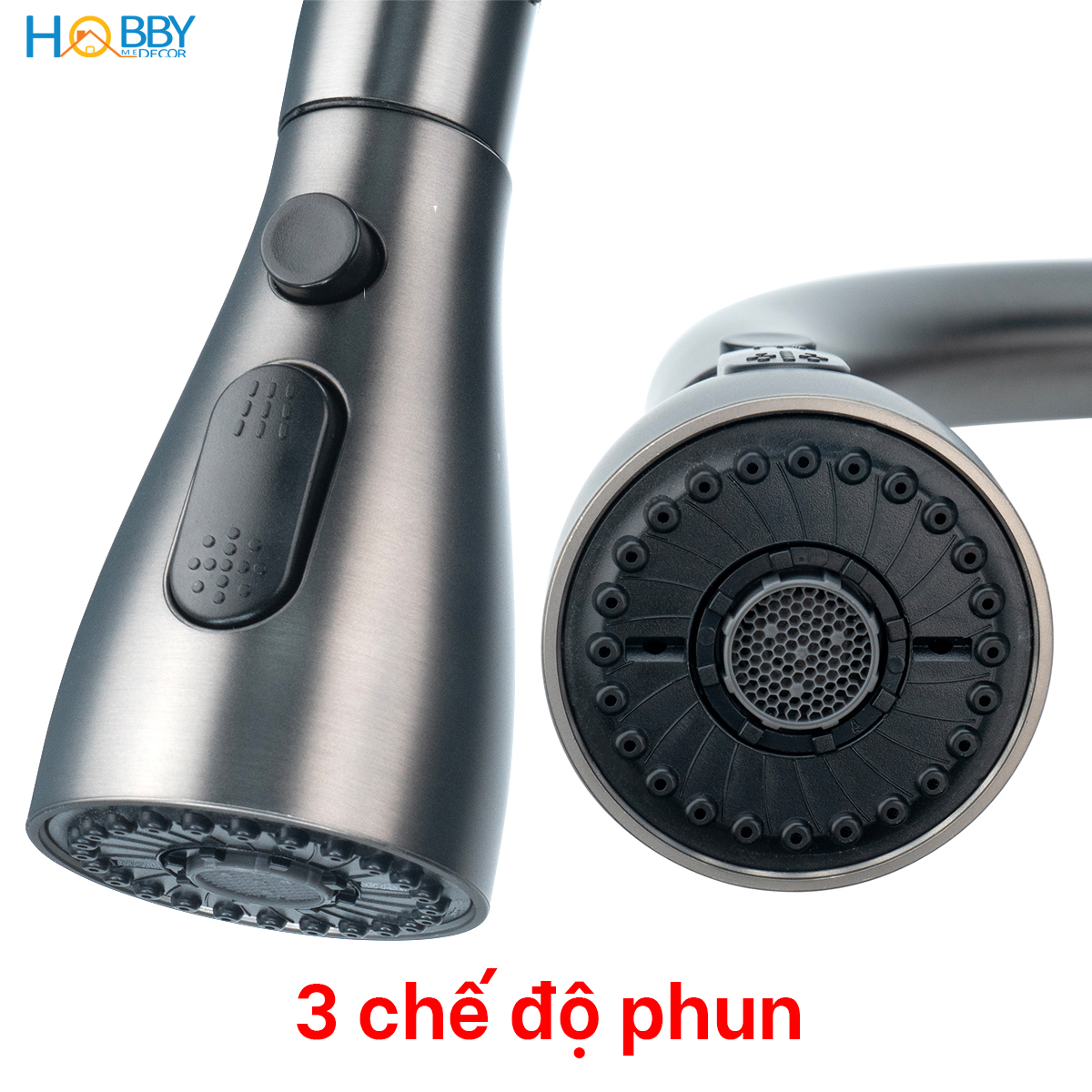 ✨Vòi rửa chén nóng lạnh dây rút 3 chế độ Hobby home decor VDR7 Inox 304 sơn xám