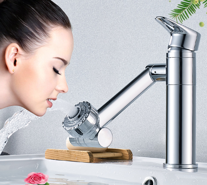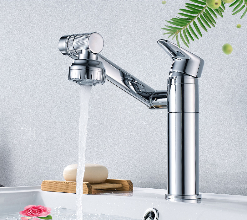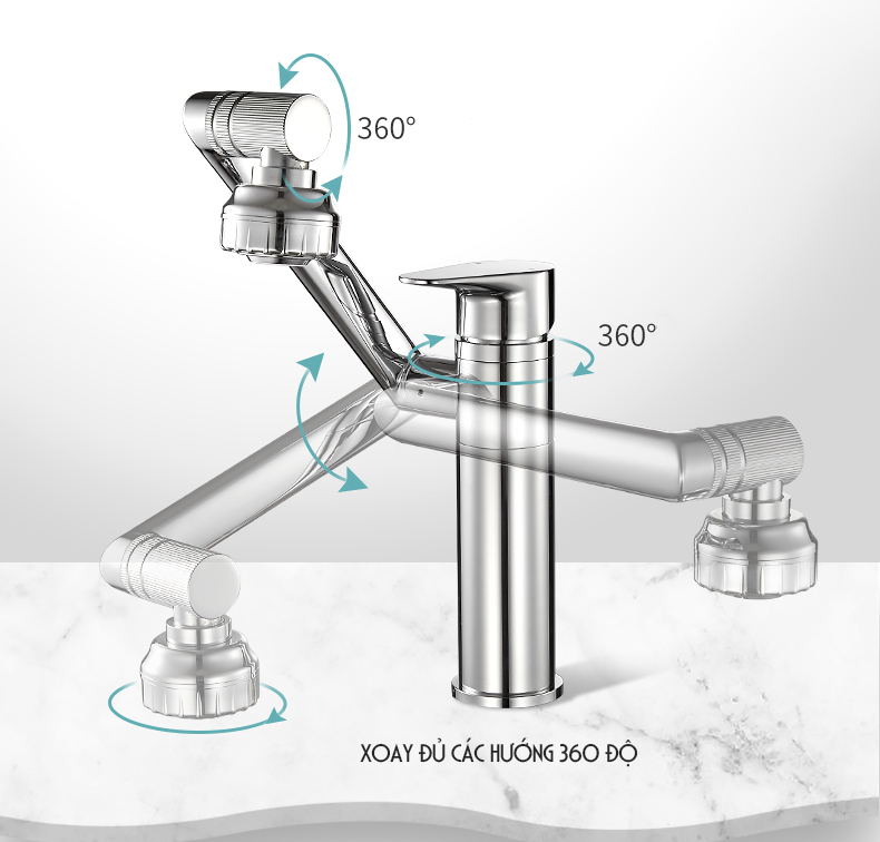 Vòi rửa mặt Lavabo cổ xoay 720 độ đa chiều, củ đồng, thân ngắn, mạ Crom, điều chỉnh nhiều chế độ tia nước Minh House