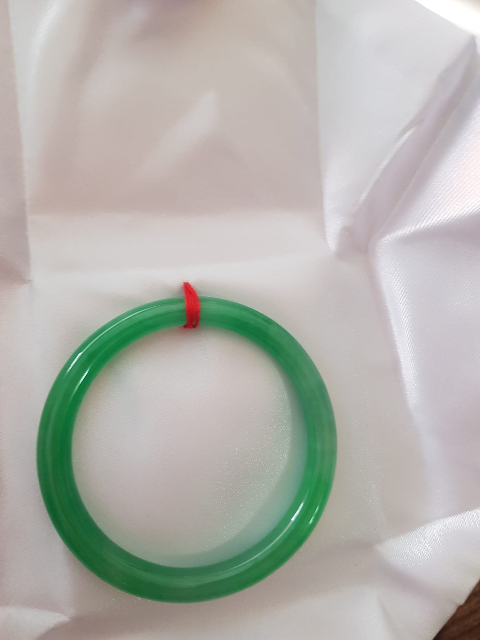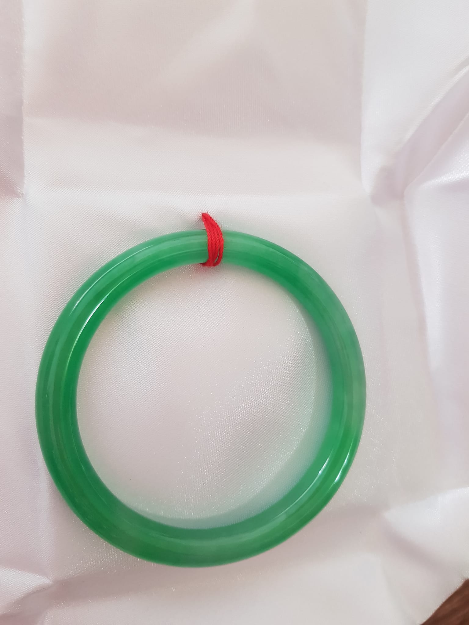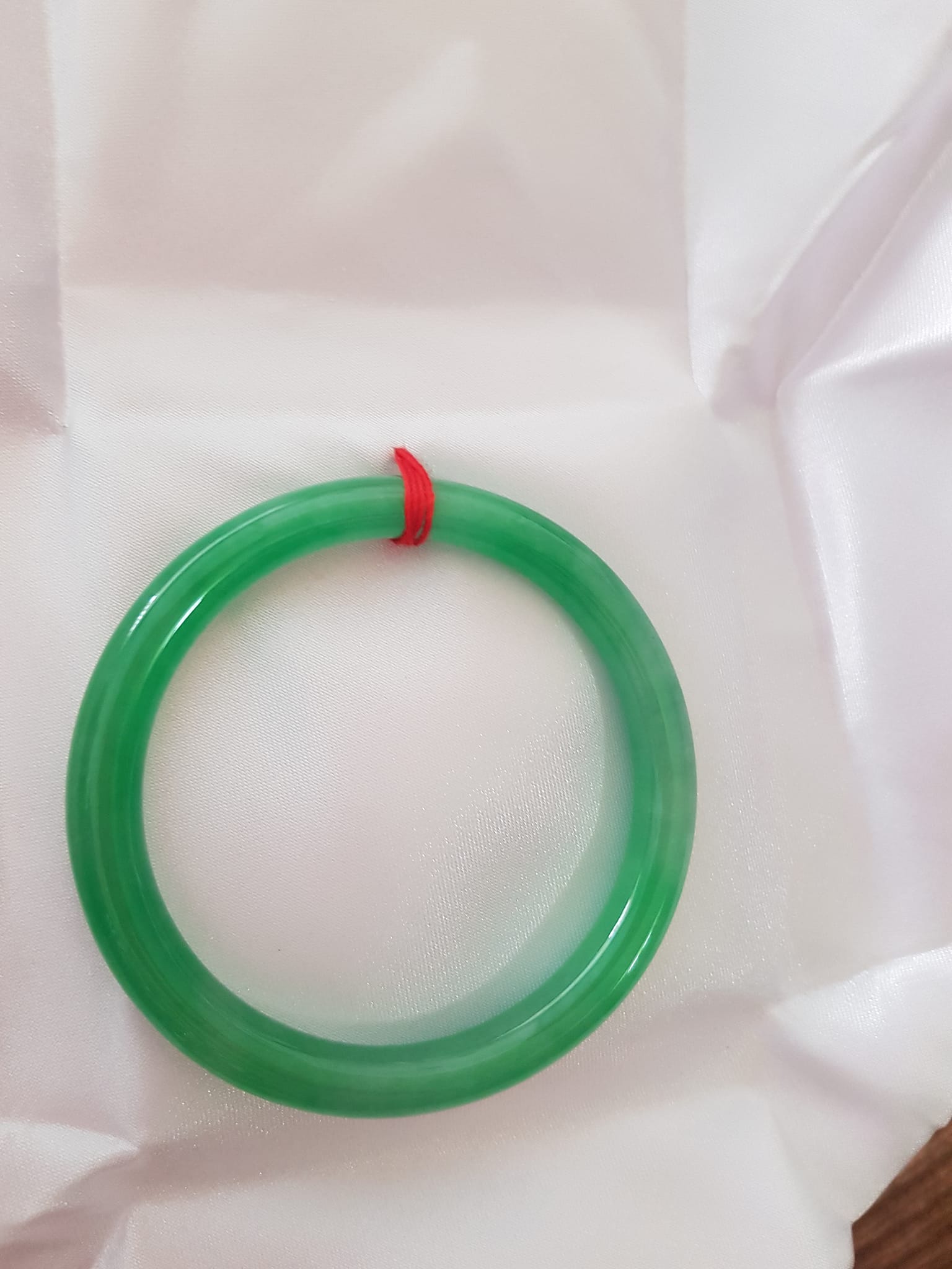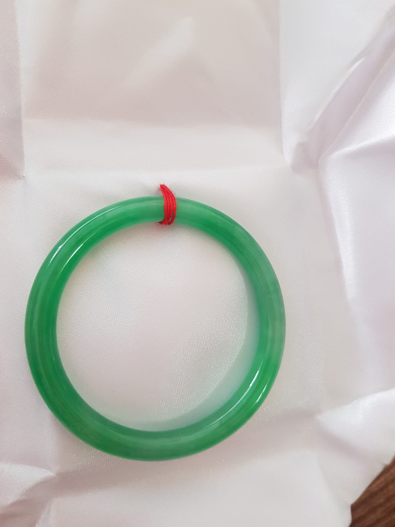 Vòng cẩm thạch Lý T 54mm x Dầy 7mm Màu Xanh lá tươi bóng mảnh khảnh đẹp hợp Nữ mệnh Mộc Hỏa 53kg - 62kg đeo ạ Sản phẩm này là tài sản cá nhân