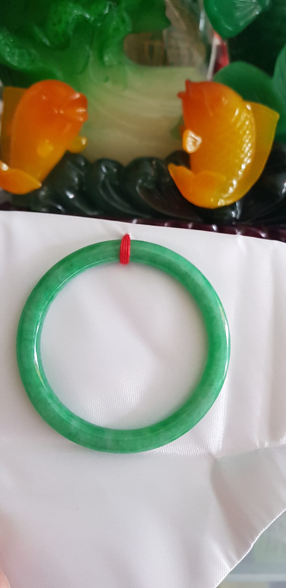 Vòng Tay Phong Thủy Đá Cẩm Thạch Lý B size 48mm x dầy 7,5mm Màu Xanh Lá nhẹ đều vòng đẹp Nữ nữ 35kg - 49kg đeo ạ Sản phẩm này là tài sản cá