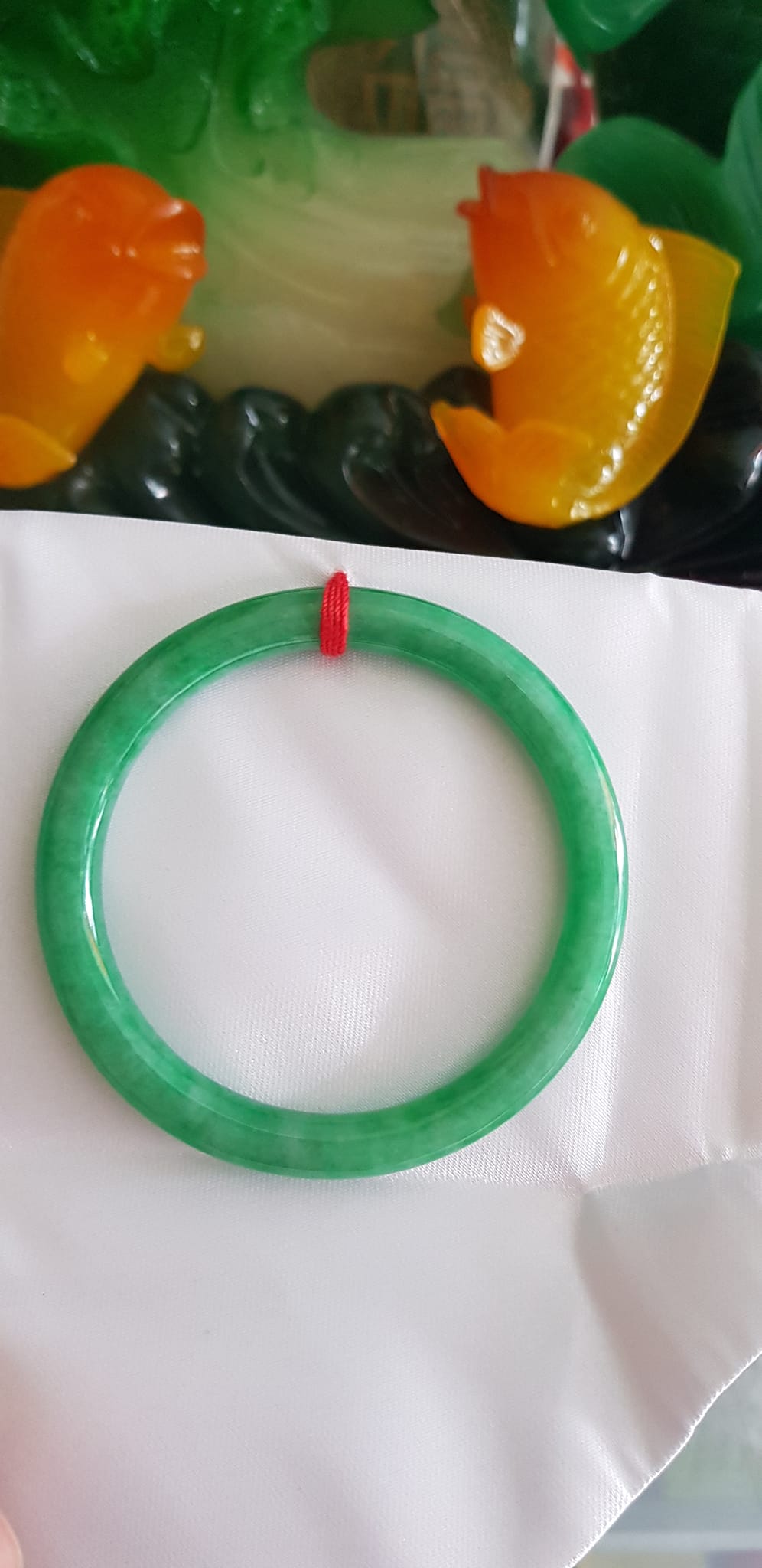 CHIẾC VÒNG TAY PHONG THỦY ĐÁ CẨM THẠCH LÝ ĐẸP K 54MM x DẦY 8MM MÀU XANH LÁ ĐỀU BÓNG ĐẸP NỮ MỆNH HỎA MỘC NỮ CÂN NẶNG 53kg đến 64kg Đeo Đẹp Tay ạ