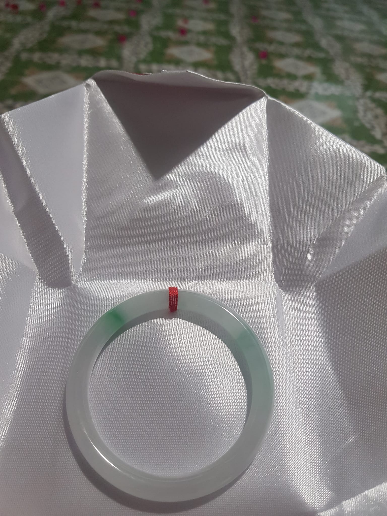 ✨Vòng cẩm thạch tự nhiên Lý A 51mm x 7mm Màu Trắng Bóng 2 điểm xanh lý nhẹ đẹp sang Nữ Mệnh Kim mệnh Thủy 50kg - 57kg ạ