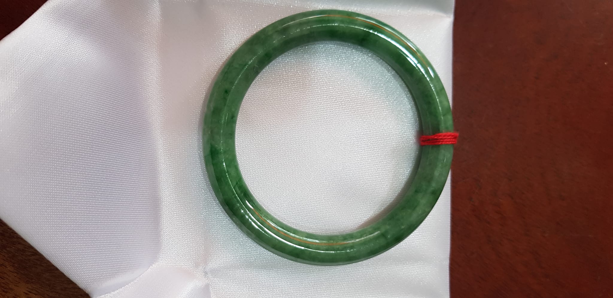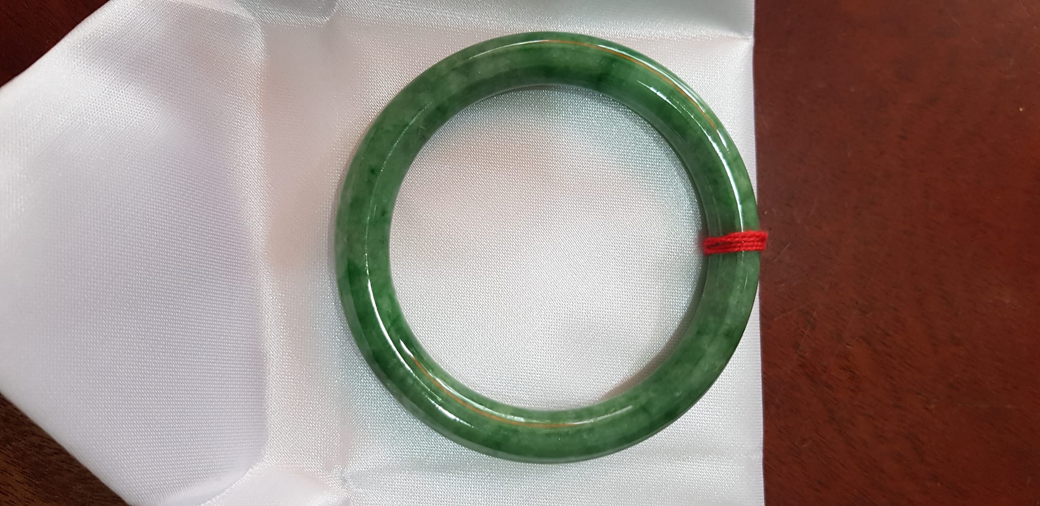 Vòng Tay Nữ Cẩm Thạch DLý 49 Ni 49mm x cọng 7mm Màu Xanh Lá Đậm Cân nặng 45kg -51kg đeo xinh tay ạ