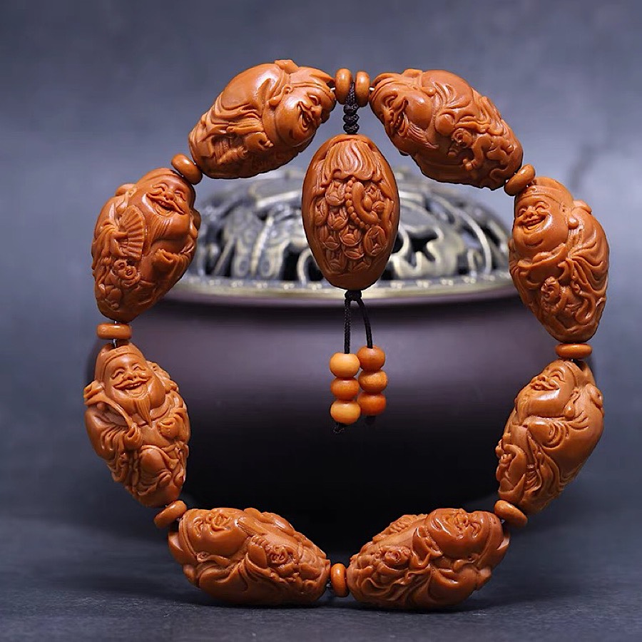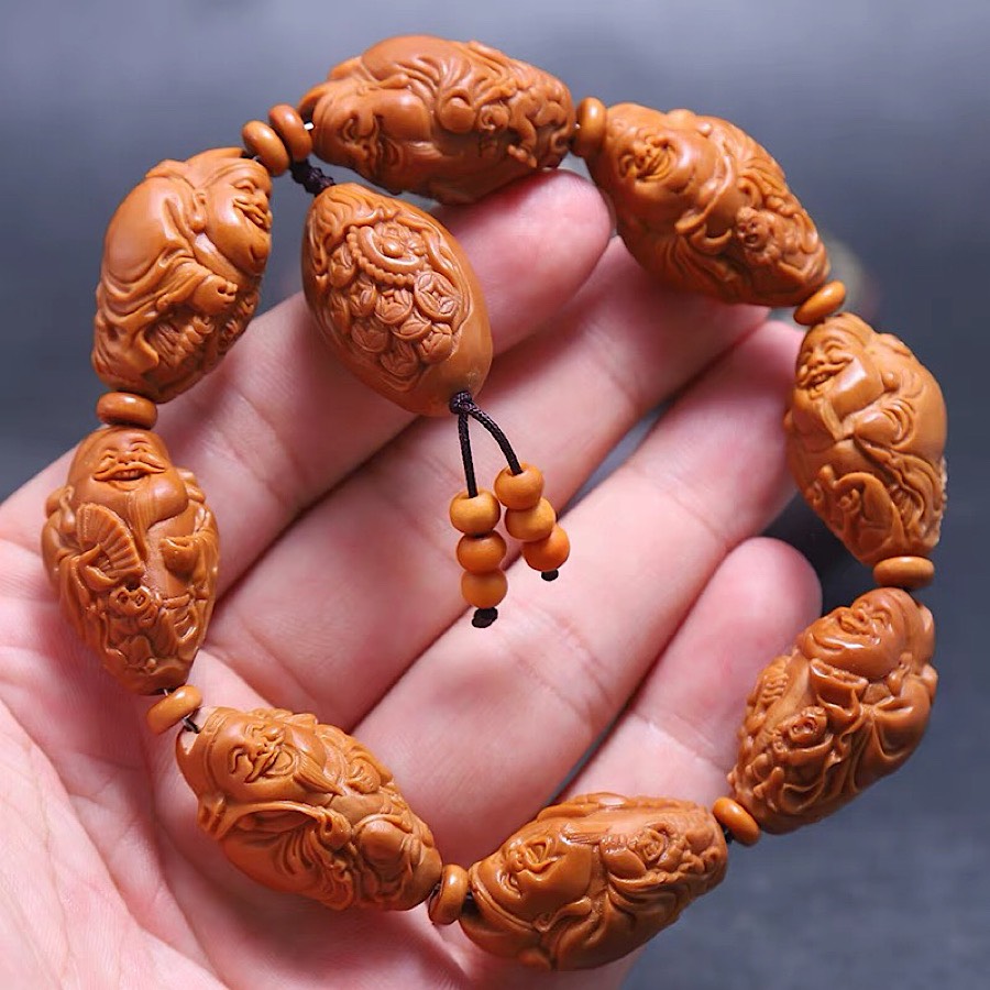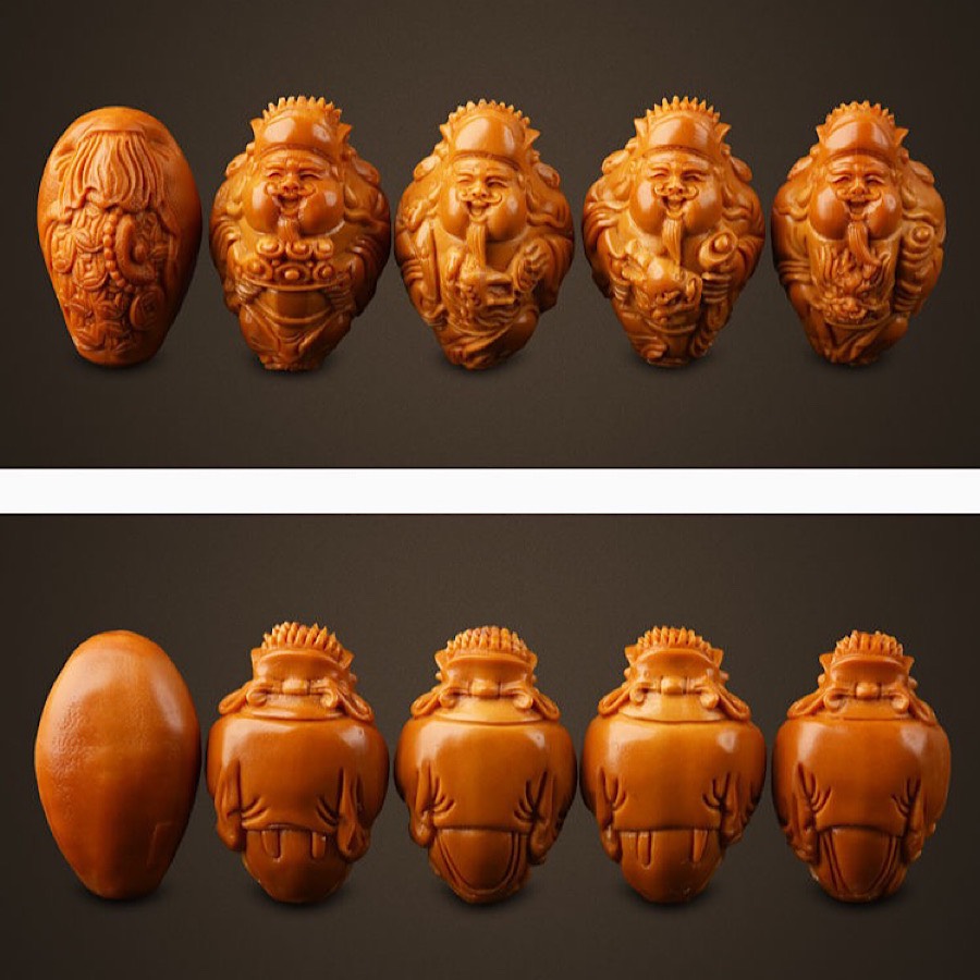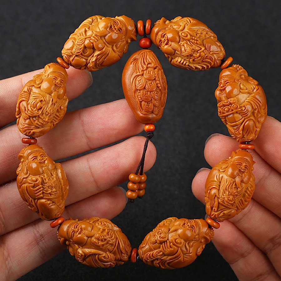 - Độc đáo : mỗi hạt chạm khắc 1 vị thần tài cầm 1 bảo vật khác nhau .
