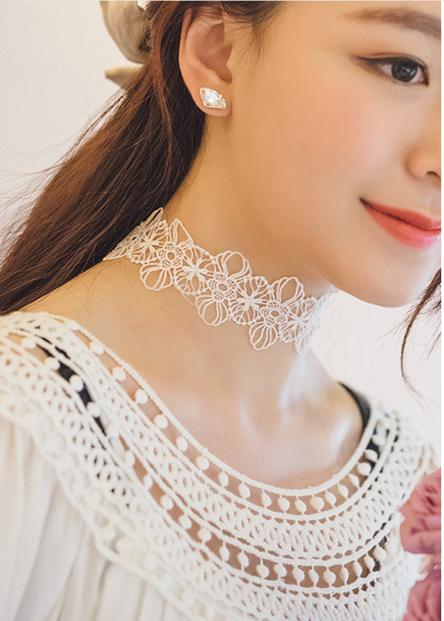 Vòng cổ choker ren trắng đính ngọc giọt nước cá tính HANA9999 Shop