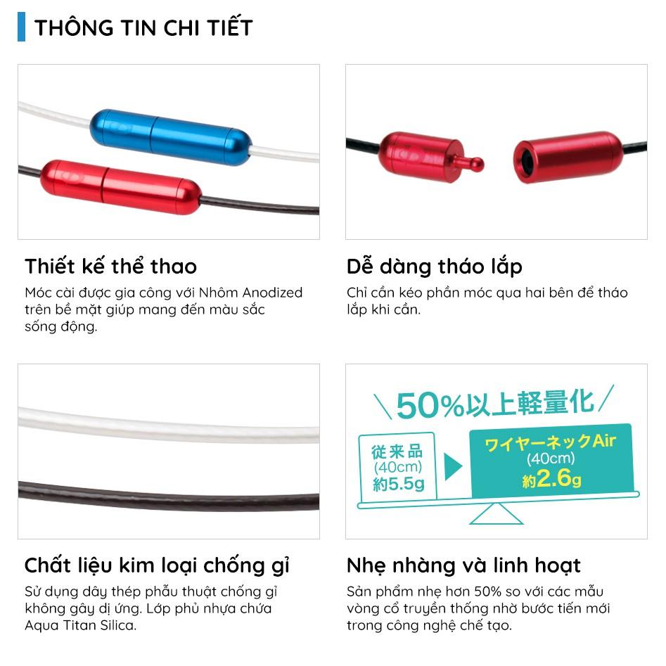 Thiết kế thanh nhã, màu sắc cuốn hút. Dành cho những những quý cô phong cách. Wire Air là sự kết hợp giữa sắc sảo và trang nhã theo 1 cách rất đặc biệt. Khi được mang trên cổ của bạn hàng ngày, Wire Air sẽ giúp bạn thư giãn và tạo nên sự cân bằng trong cuộc sống của bạn như những sản phẩm Phiten ểu dáng đẹp và phong cách.
