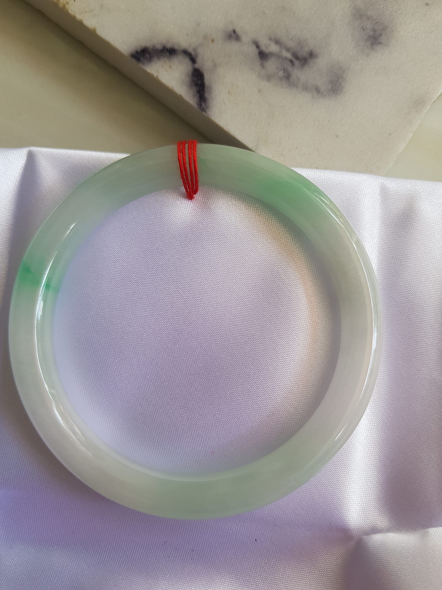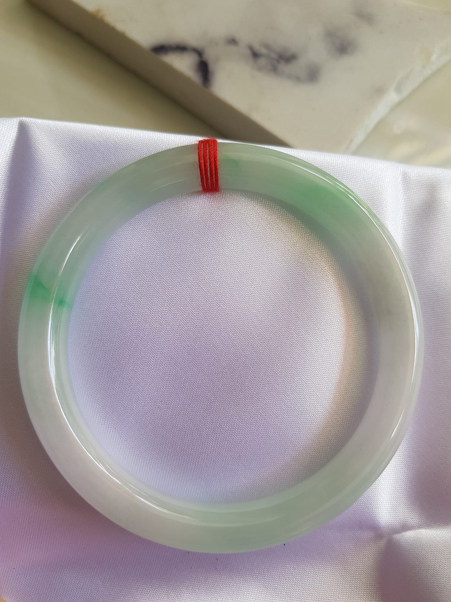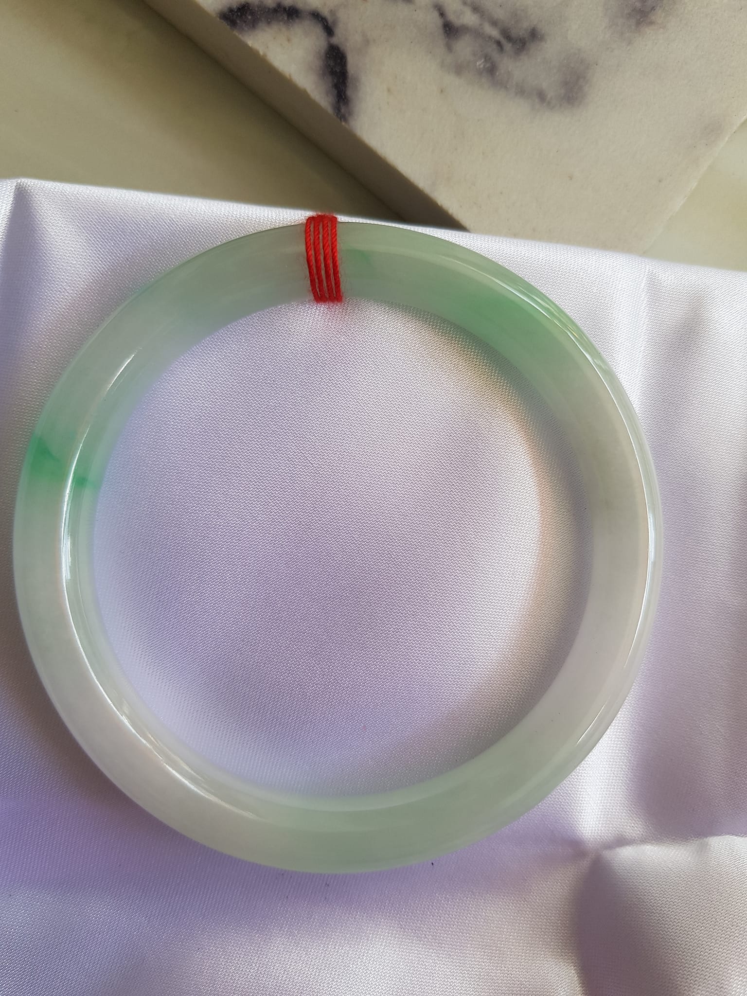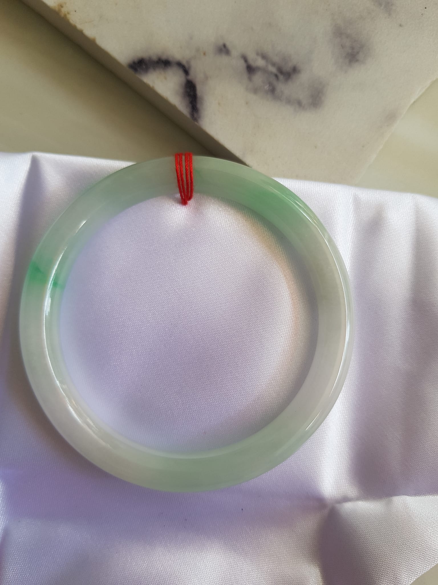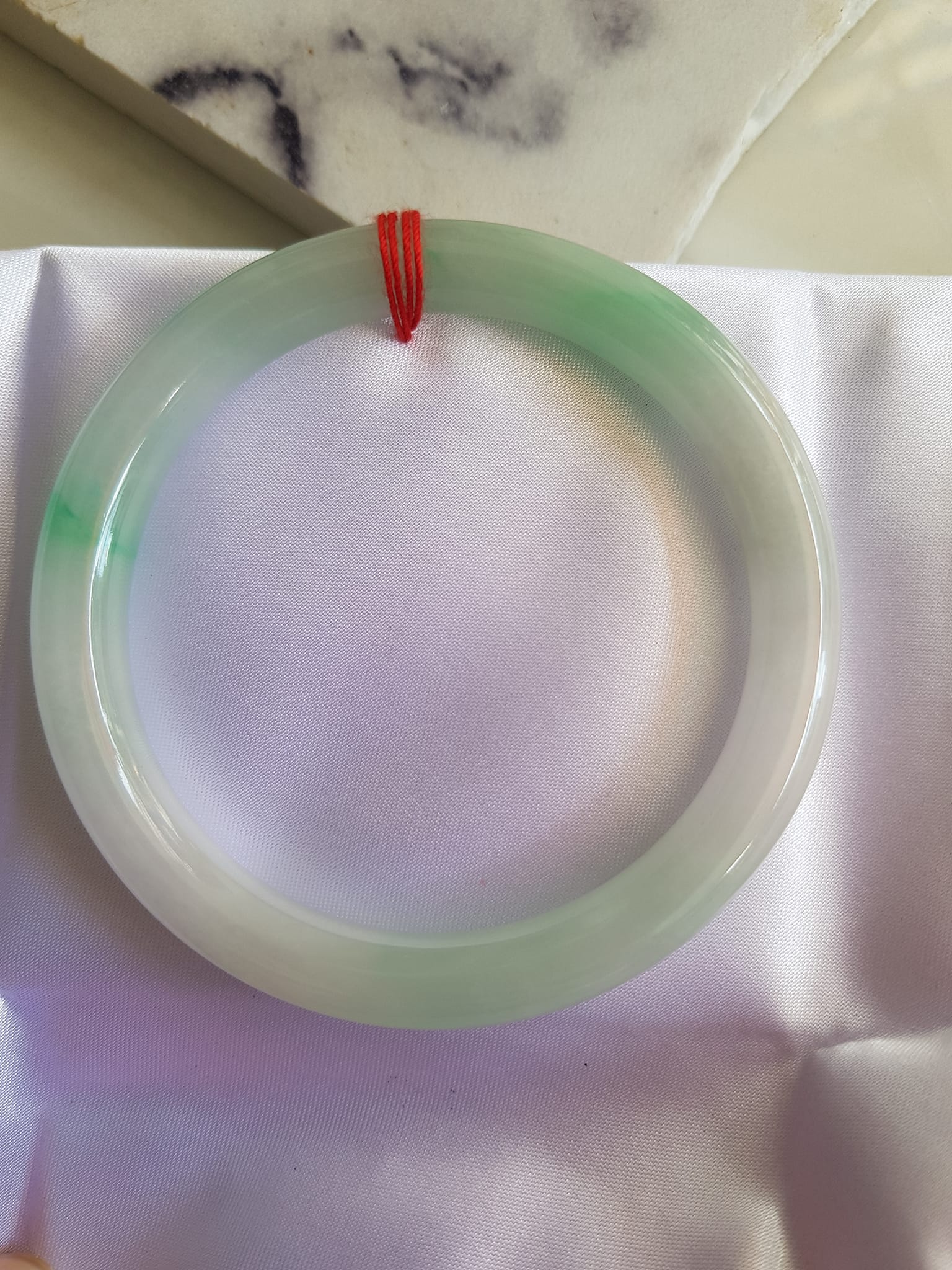 Size vòng 58mm x Dầy 8mm màu Trắng Bóng xanh lý nhẹ Đẹp sang