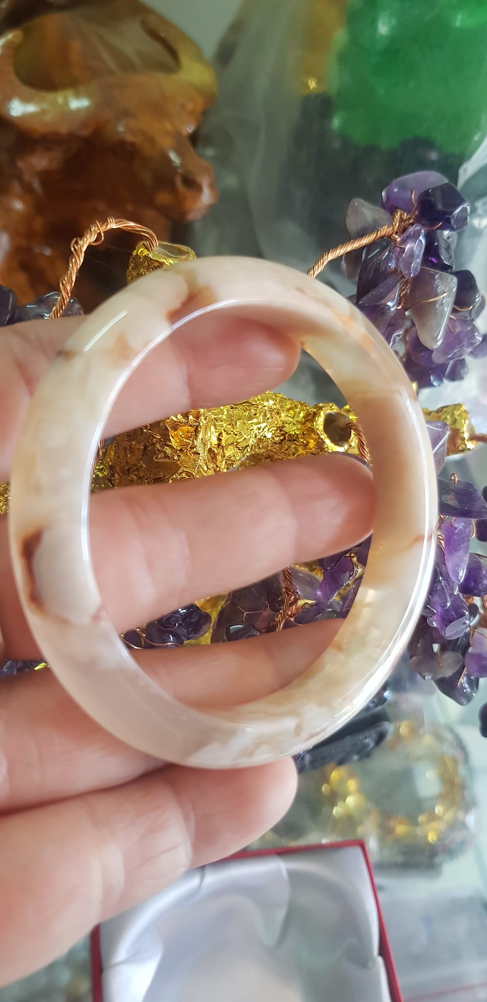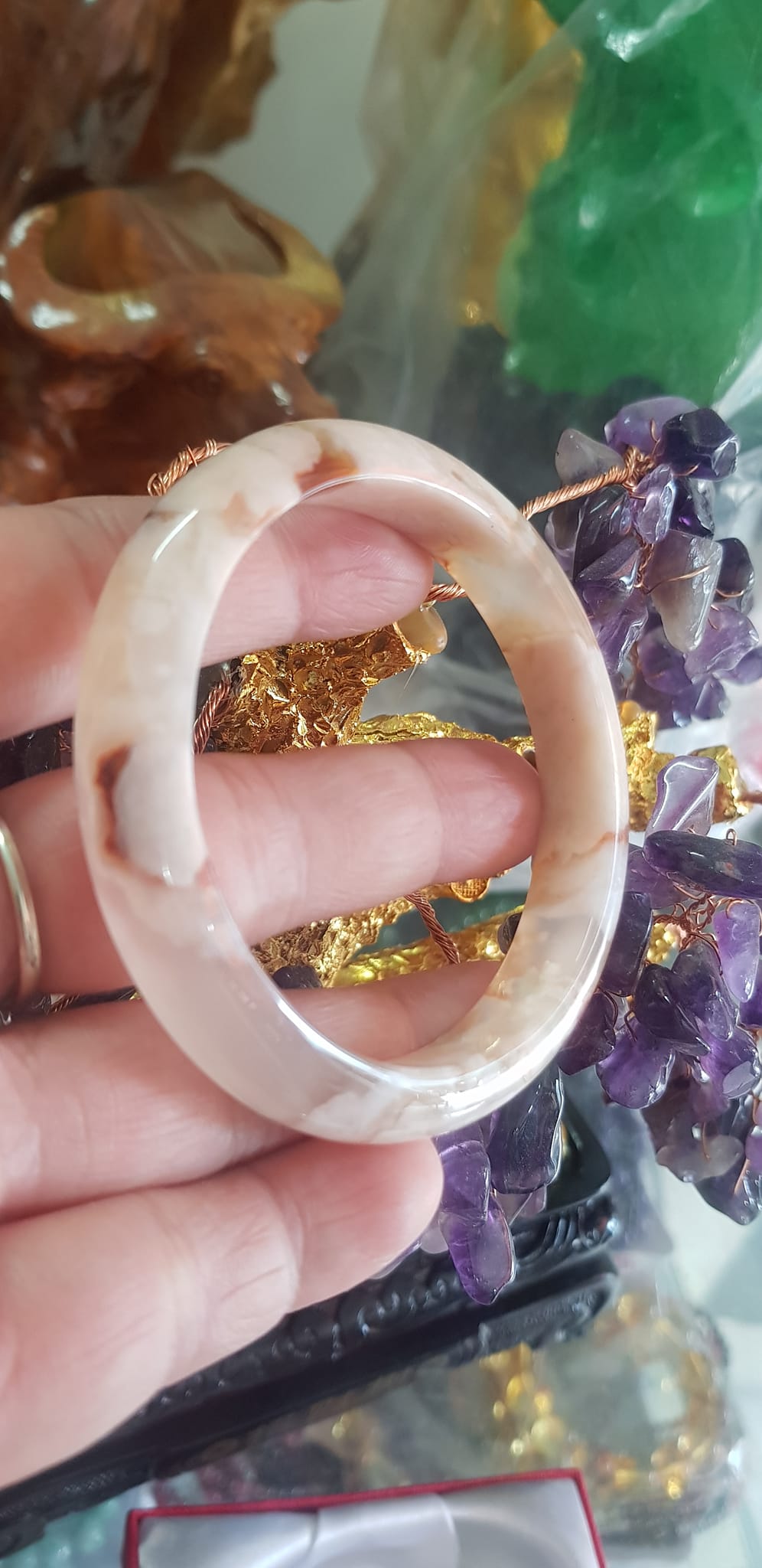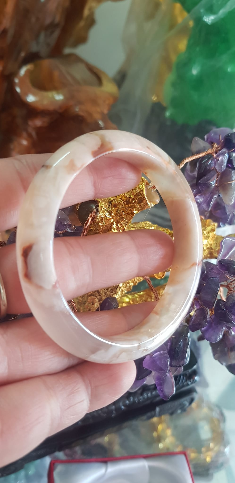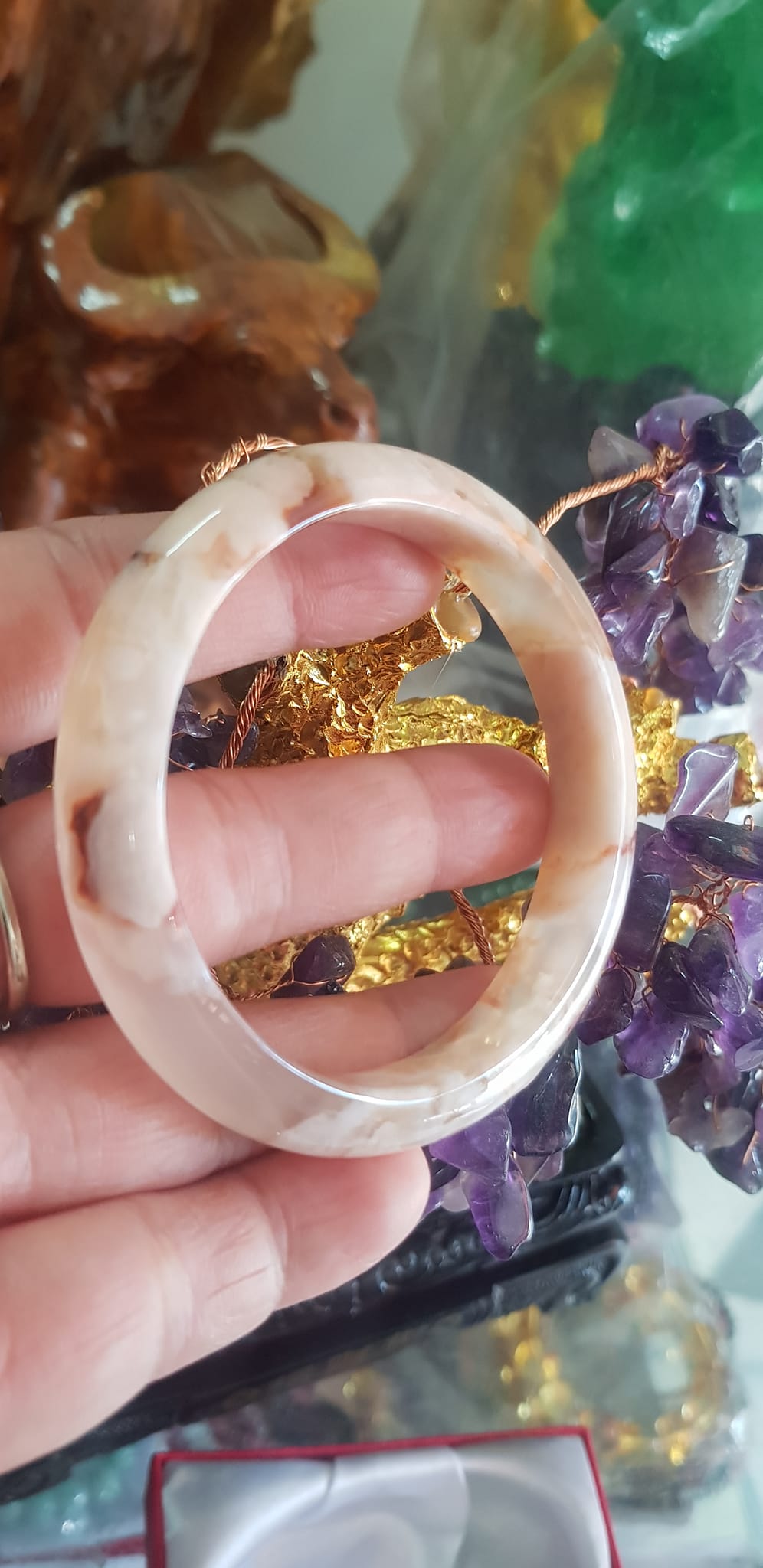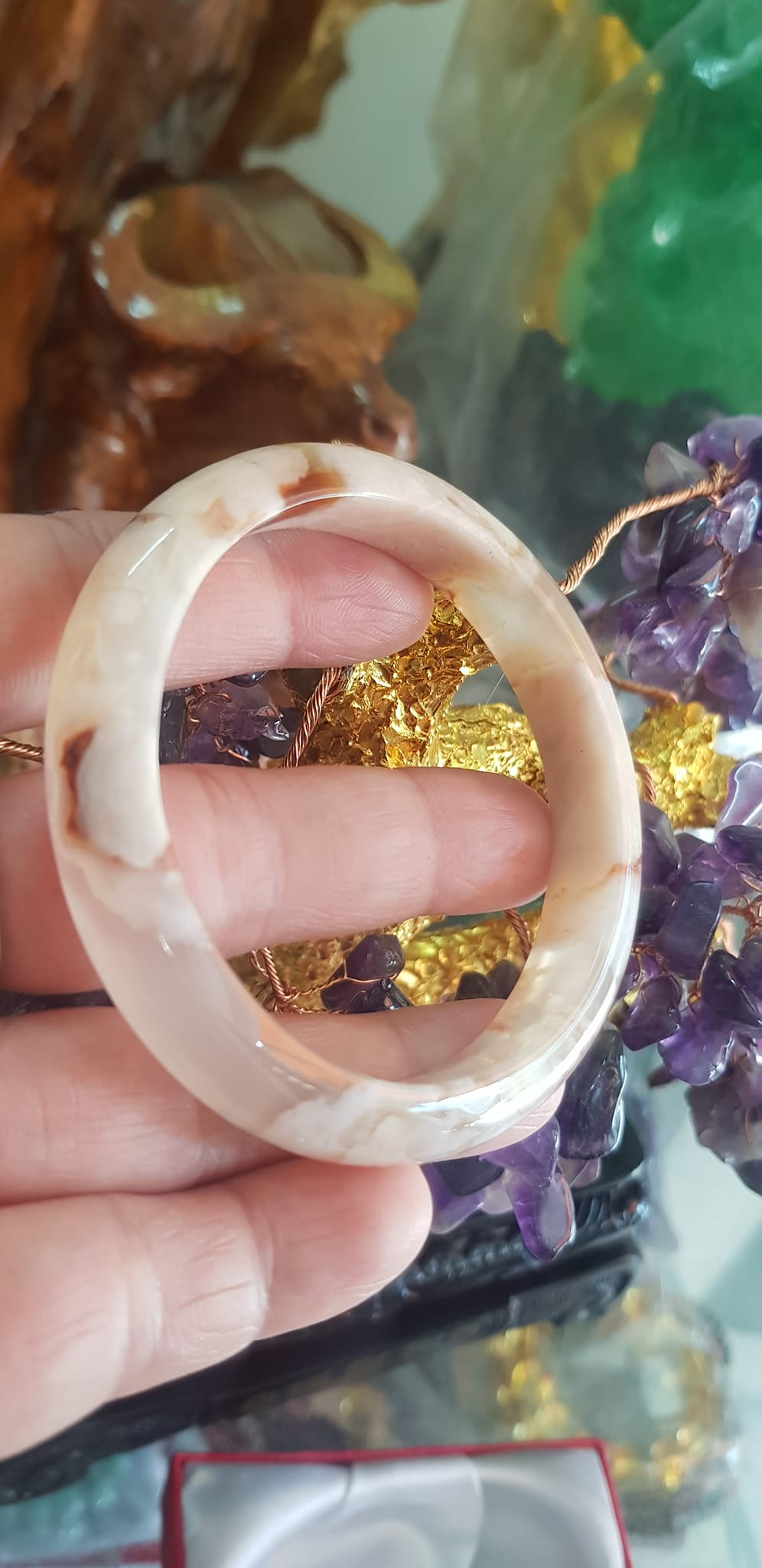 Vòng tay Nữ Bản Hẹ Mới Đá Mã Não Bông Tuyết Hồng nhẹ trắng trong bóng quá đẹp luôn ạ Ni 53mm x Cao 11mm x dầy 7mm Nữ Cân nặng 52kg - 55kg đeo