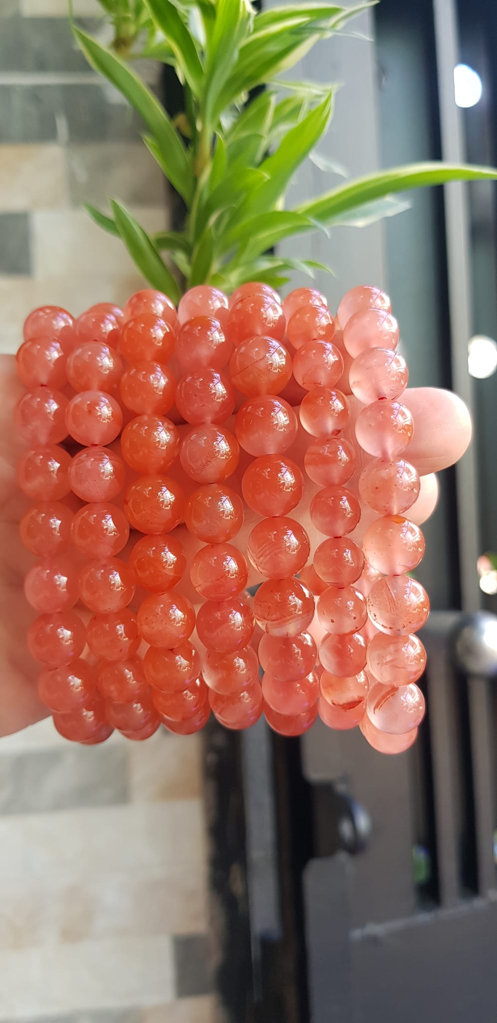 ✨Vòng đeo tay nữ chuỗi mới đá mã não hồng cam bóng mượt đẹp size vòng hạt 10mm nam nữ mệnh hỏa mệnh thổ đeo ạ