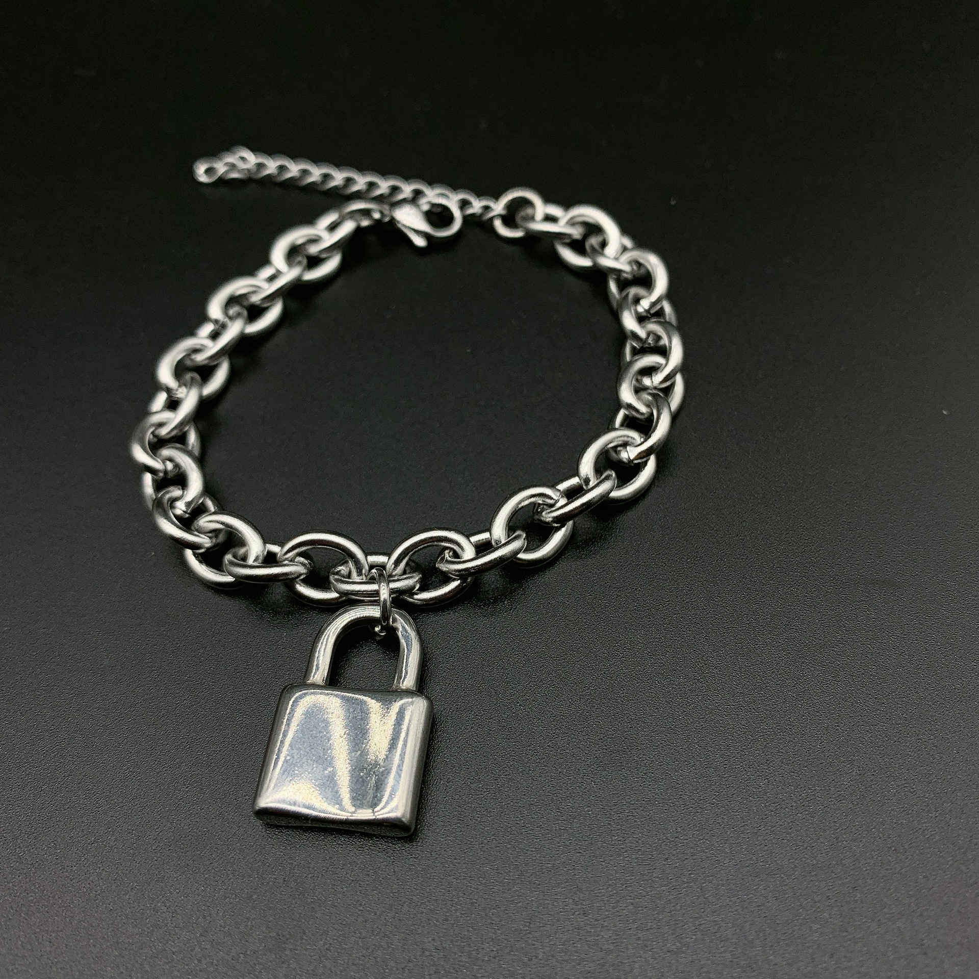 ✨Vòng đeo tay xích tròn titanium không gỉ lắc khoá cá tính