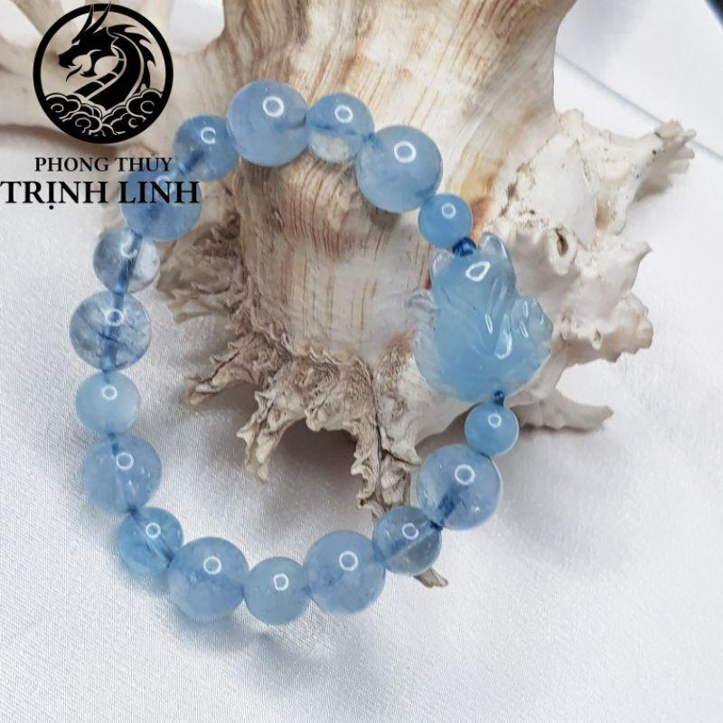 Vòng tay NỮ Đá AQUA XANH ĐẸP size hạt 9mm - XANH AQUA NHẸ ĐẸP NỮ MỆNH THUỶ MỘC Hỏa đeo - Vòng tay phong thủy đẹp đeo hợp tuổi hợp mệnh tốt làm ăn