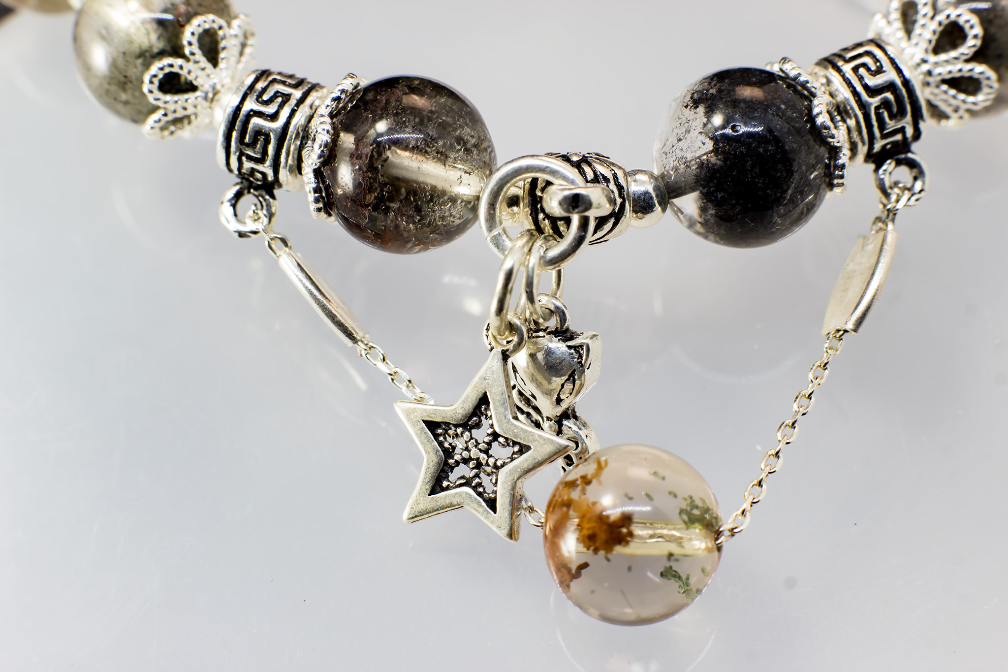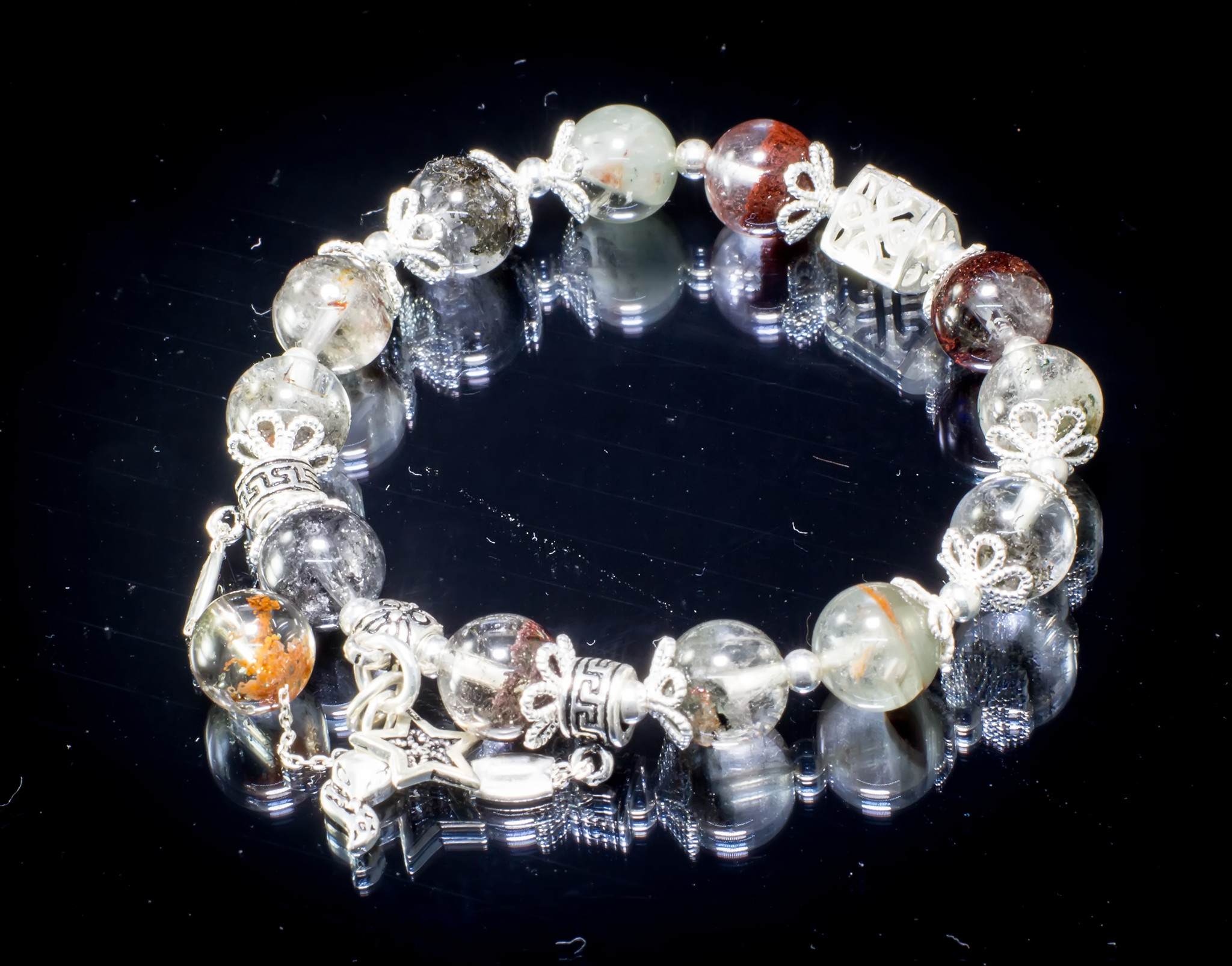 Một chiếc vòng với 12 viên Thạch anh ưu linh cảnh 9.3-9.5mm thiên nhiên tuyệt hảo, long lanh đầy quyến rũ, thu hút tài lộc, rất hữu ích cho người làm kinh doanh buôn bán, rất tuyệt cho việc tích lũy tài sản, mang lại sự sung túc, thịnh vượng, thành công, được mix với bộ charm hồ ly may mắn bằng bạc 92.5% điêu khắc tinh xảo, chạm trổ cầu kỳ, đặc biệt, 1 viên scenned quartz trong trẻo và đẹp nhất được treo bằng sợi dây bạc mỏng manh, lắc nhẹ theo từng cử động nhỏ, tôn lên nét đẹp quyến rũ và kiêu sa của bạn gái, mang lại may mắn, tài lộc cho bạn.