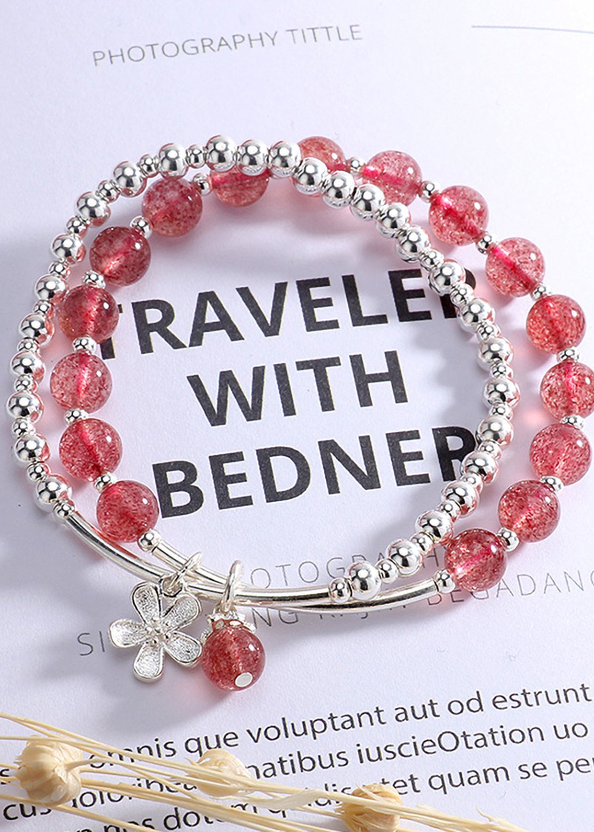 ✨Vòng tay 2 line đá thạch anh dâu phối charm hoa bạc mệnh hỏa, thổ - Ngọc Quý Gemstones