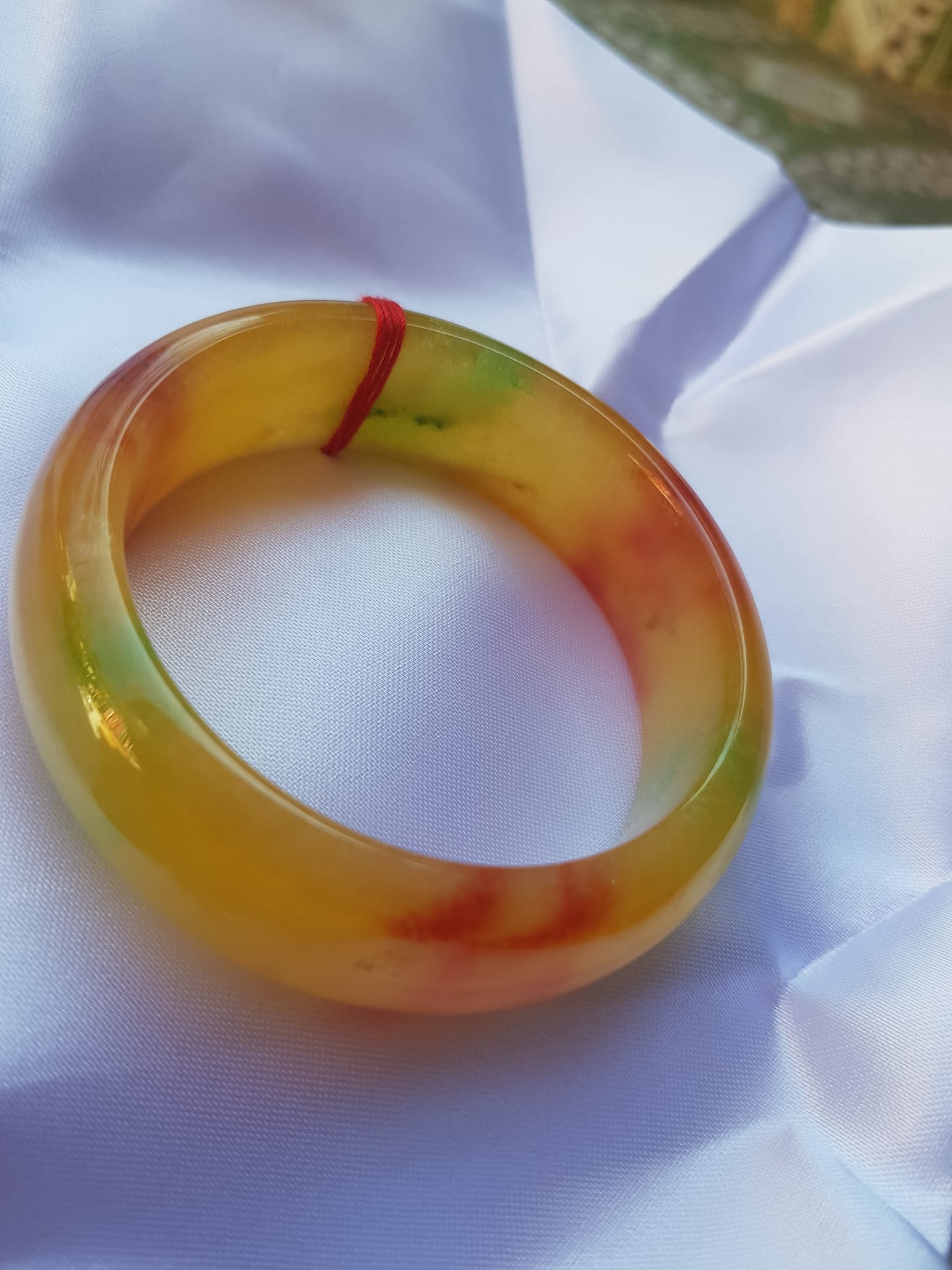 ✨Vòng Tay Bản Hẹ Vàng Đỏ tươi bóng đẹp Size 59mm x cao 19mm x dầy 9mm Chất liệu đá cẩm thạch Hợp Nam Nữ mệnh Thổ mệnh Kim 60kg - 68kg đeo đẹp ạ