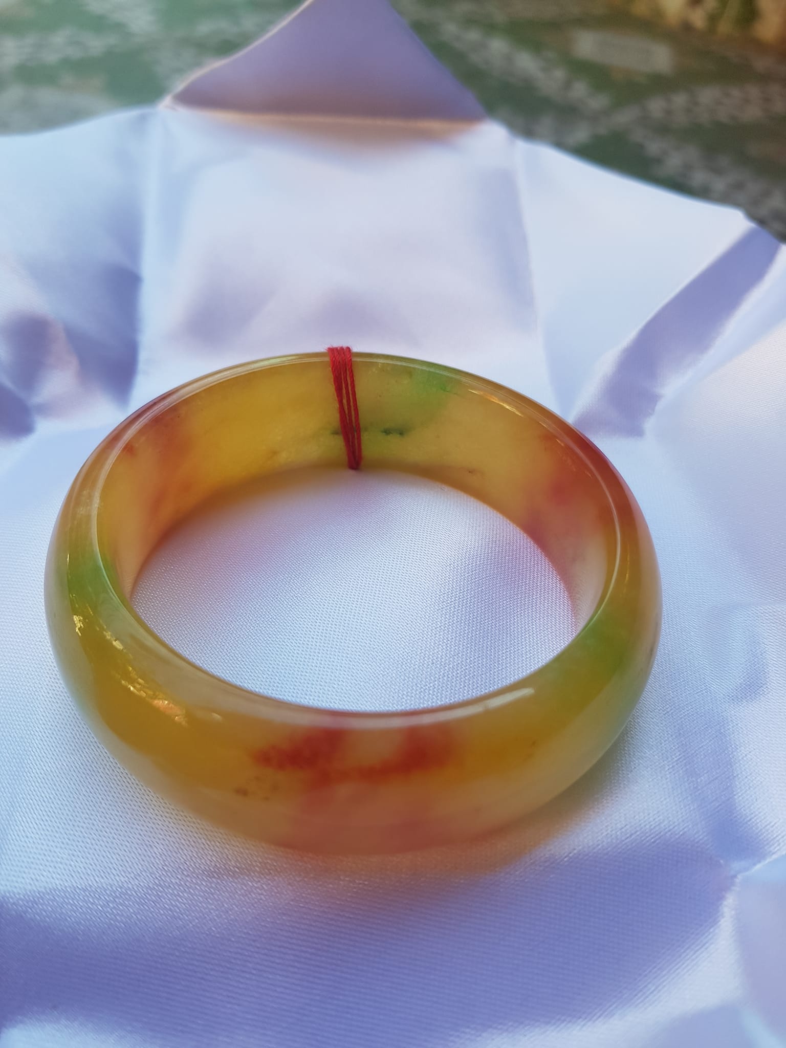Vòng Tay Bản Hẹ Vàng Đỏ tươi bóng đẹp Size 59mm x cao 19mm x dầy 9mm Chất liệu đá cẩm thạch Hợp Nam Nữ mệnh Thổ mệnh Kim 60kg - 68kg đeo đẹp ạ