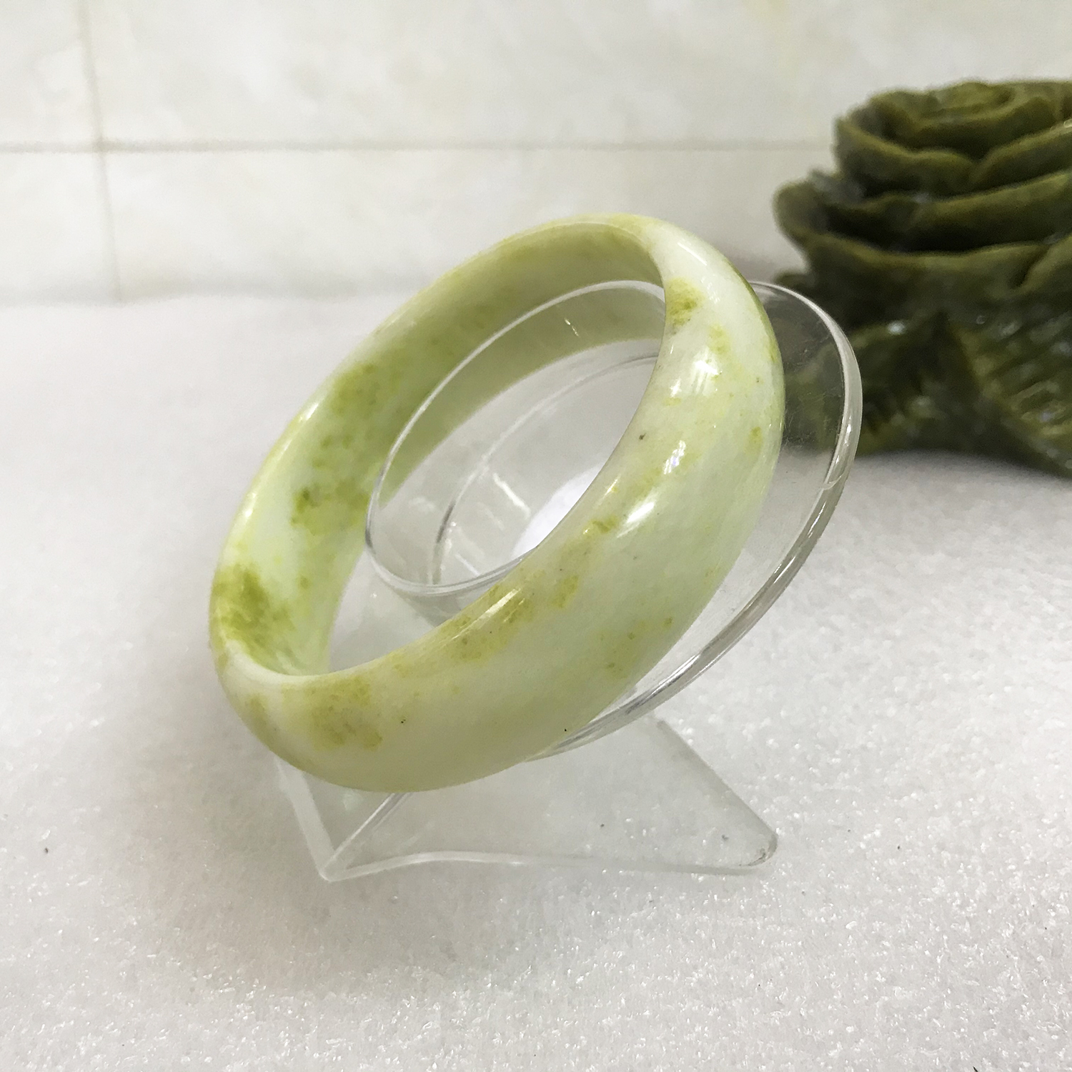 1.Chất: Đá ngọc Serpentine xanh lá nhạt 100% đá tự nhiên khai thác và chế tác tại Việt Nam, màu sắc đẹp y như hình 2. Kích thước: Chiều cao của vòng là 2.5-2.9 cm.