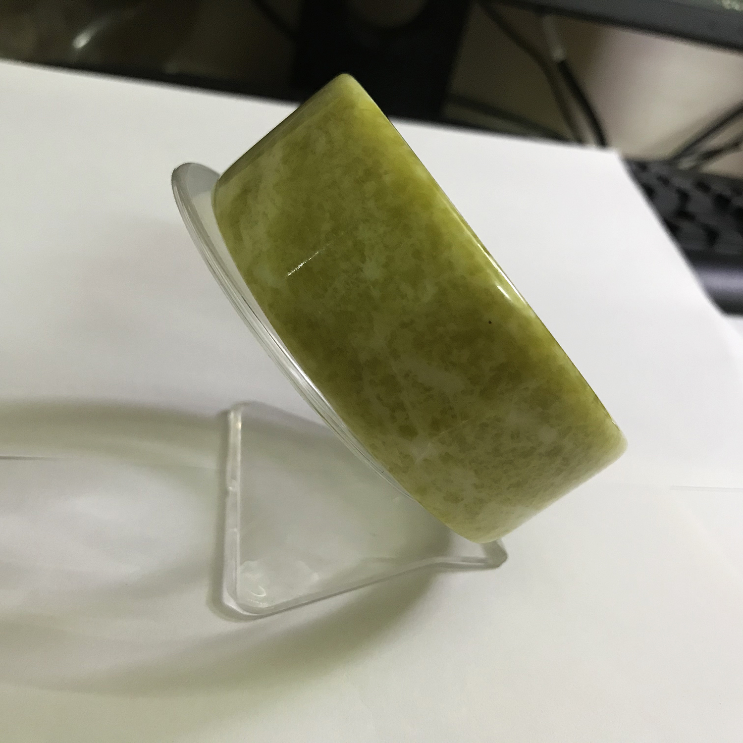 1.Chất: Đá ngọc Serpentine xanh lá nhạt 100% đá tự nhiên khai thác và chế tác tại Việt Nam, màu sắc đẹp y như hình 2. Kích thước: Chiều cao của vòng là 2.5-2.9 cm.