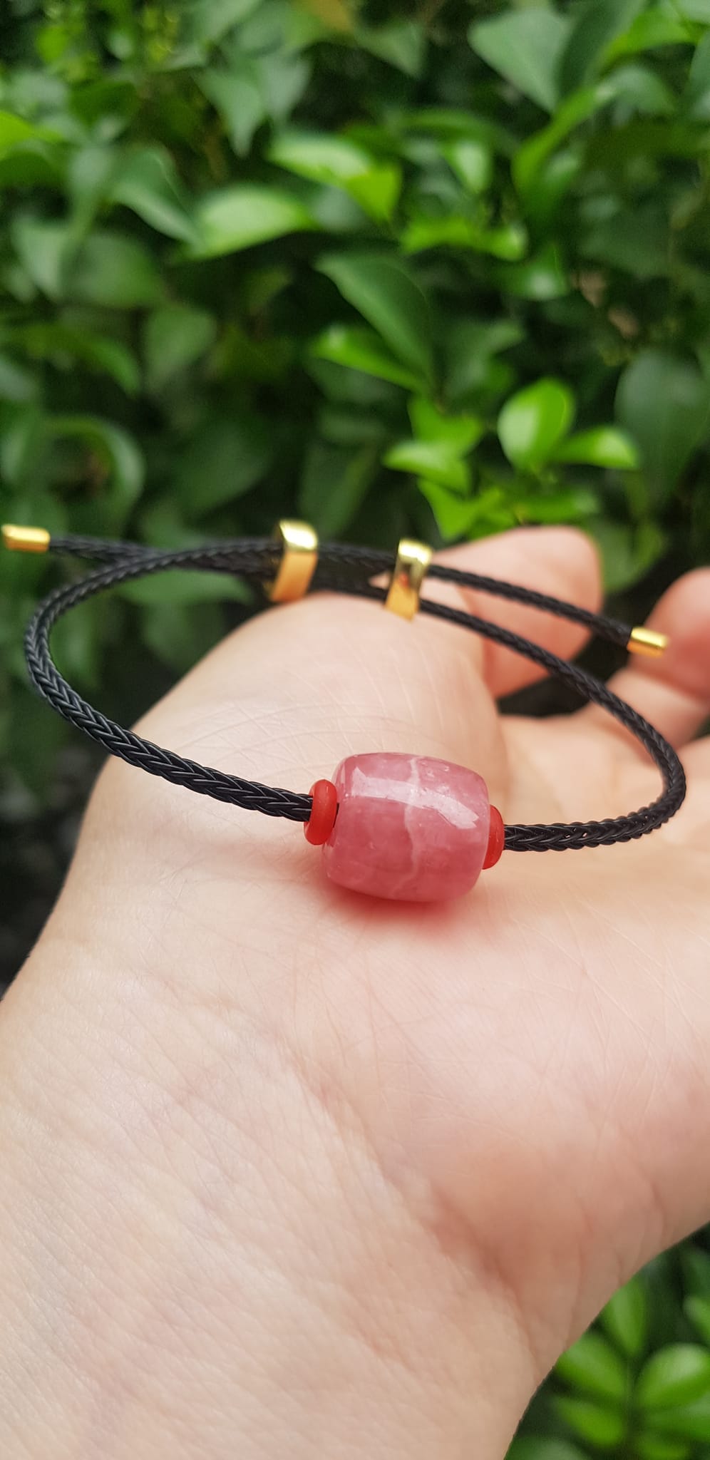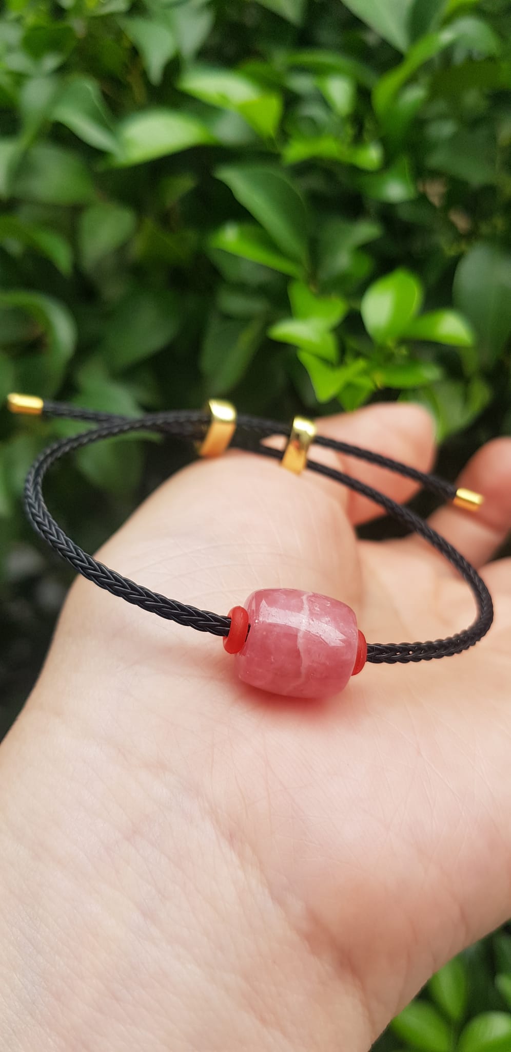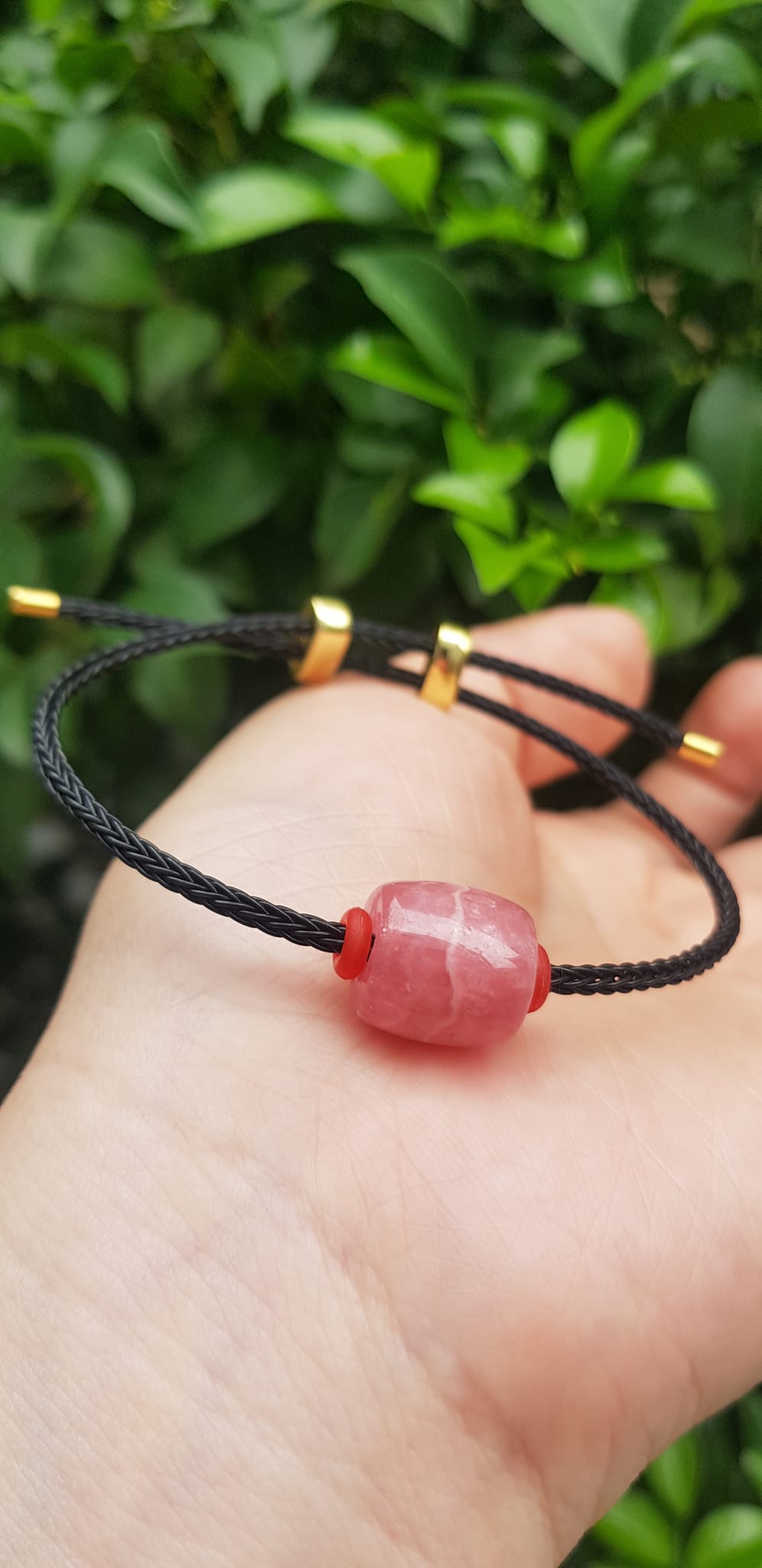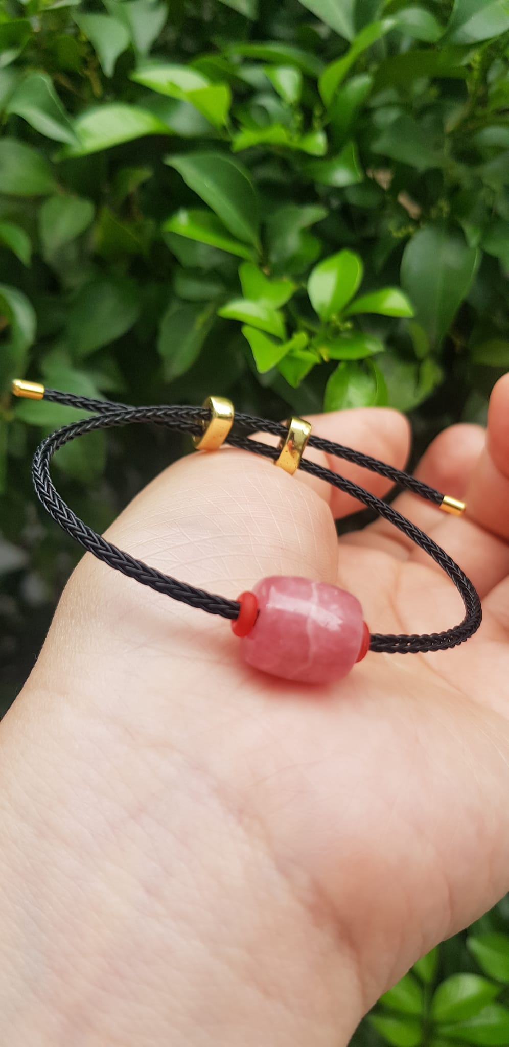 ✨Vòng tay Charm Đá Đào Hoa hồng tươi tự nhiên bóng đẹp phối dây đen may mắn có khoen chỉnh theo tay lớn nhỏ được Nữ mệnh hỏa, mệnh thổ đeo xinh tay may mắn tài lộc tốt công việc ạ
