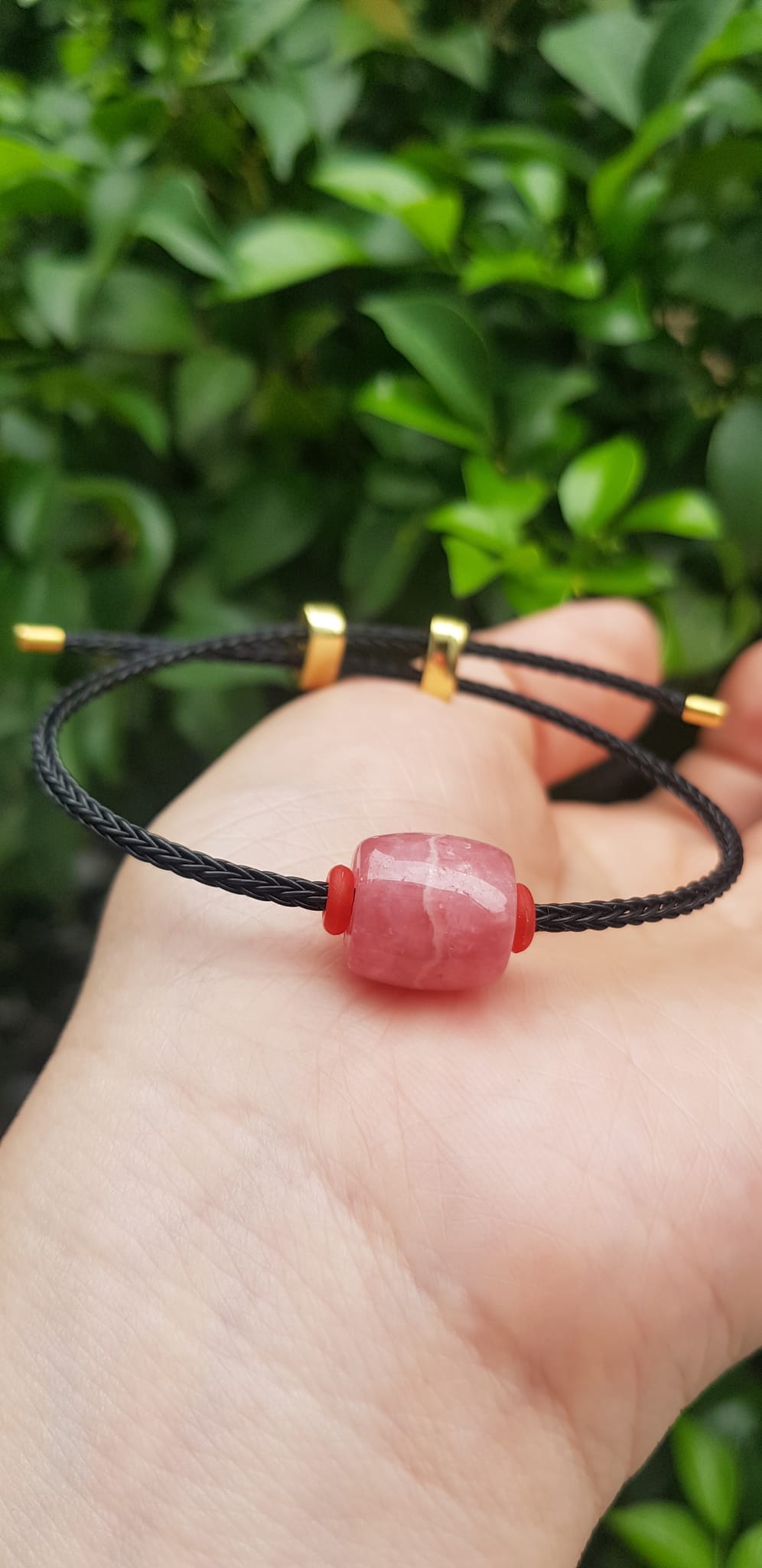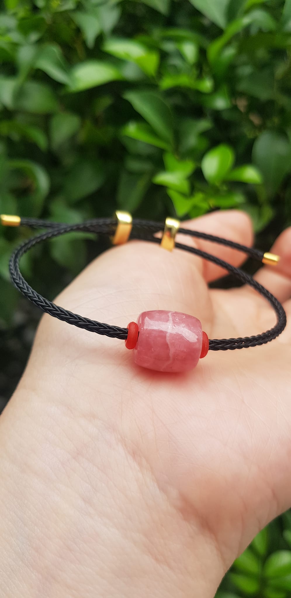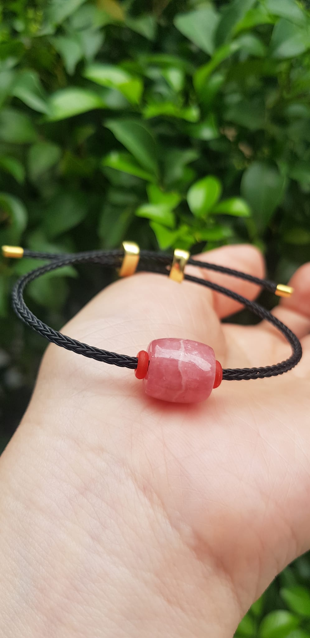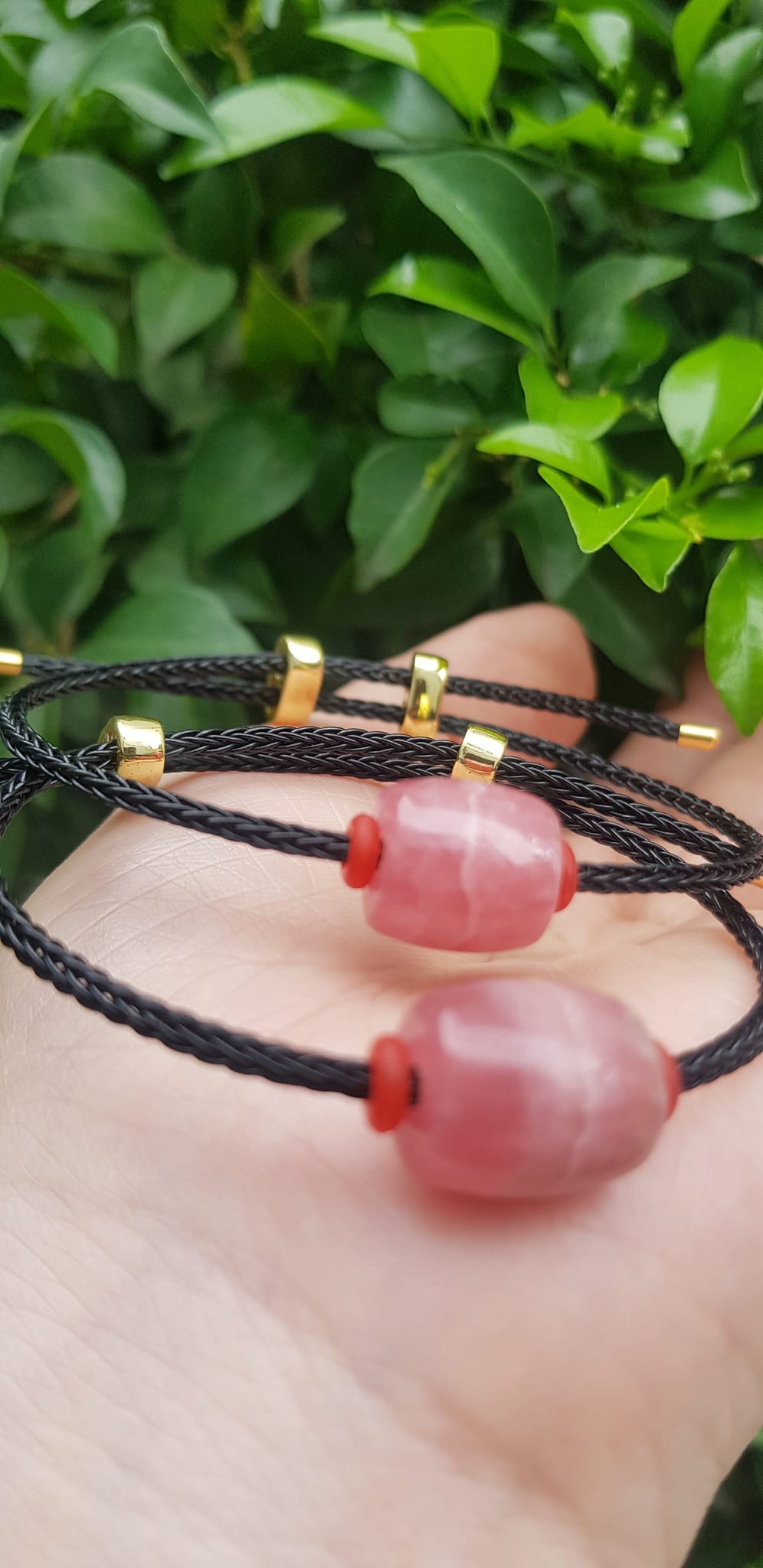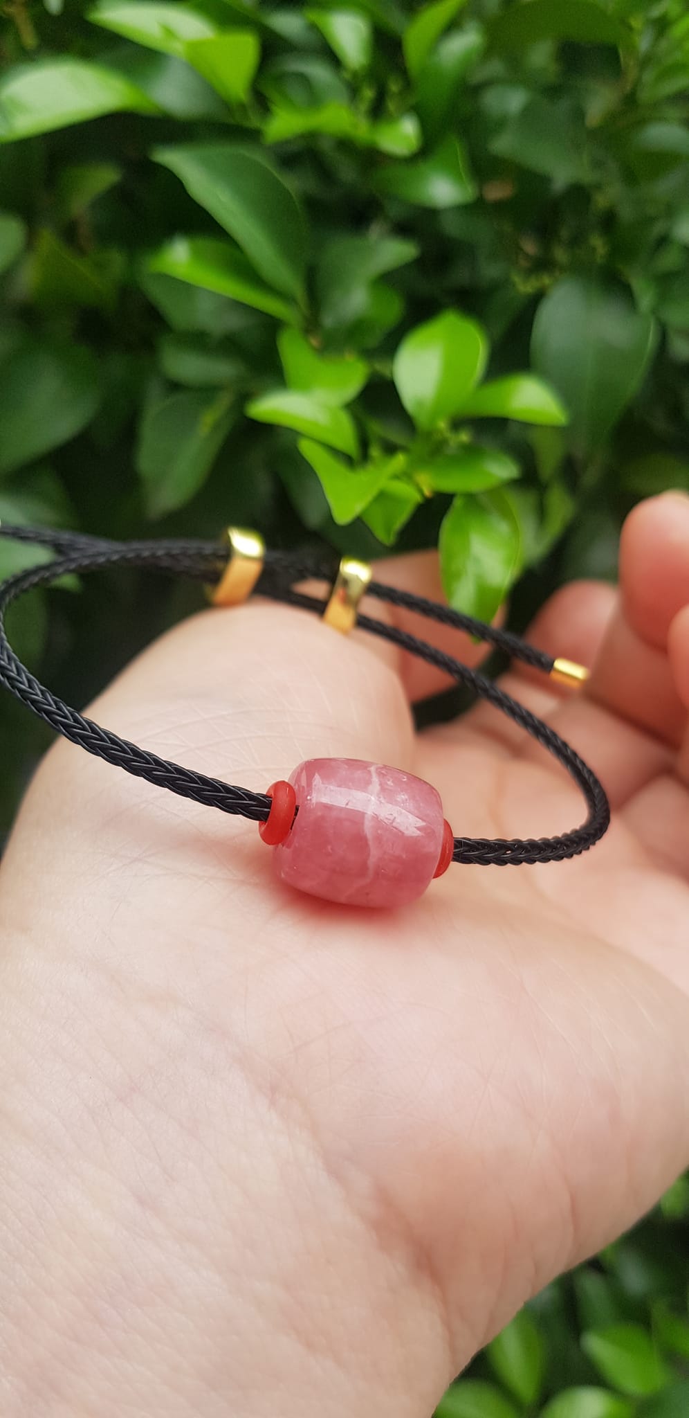 ✨Vòng tay Charm Đá Đào Hoa hồng tươi tự nhiên bóng đẹp phối dây đen may mắn có khoen chỉnh theo tay lớn nhỏ được Nữ mệnh hỏa, mệnh thổ đeo xinh tay may mắn tài lộc tốt công việc ạ