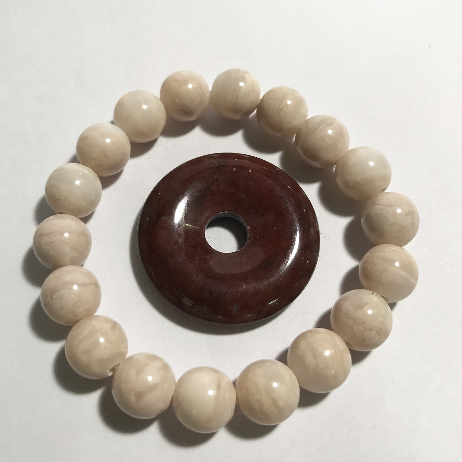 ✨Vòng tay chuỗi hạt ngọc canxidene màu hồng phấn 16 li đá tự nhiên của Việt Nam vongtaychuoihat16li