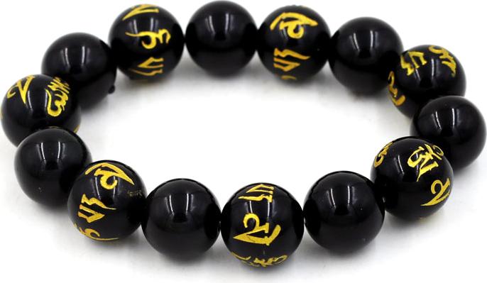 Vòng chuỗi gồm sự kết hợp giữa thạch anh đen mạ-vàng "lục tự kim ngôn" và thạch anh đen, là sản phẩm Phật giáo mang ý nghĩa an khang.