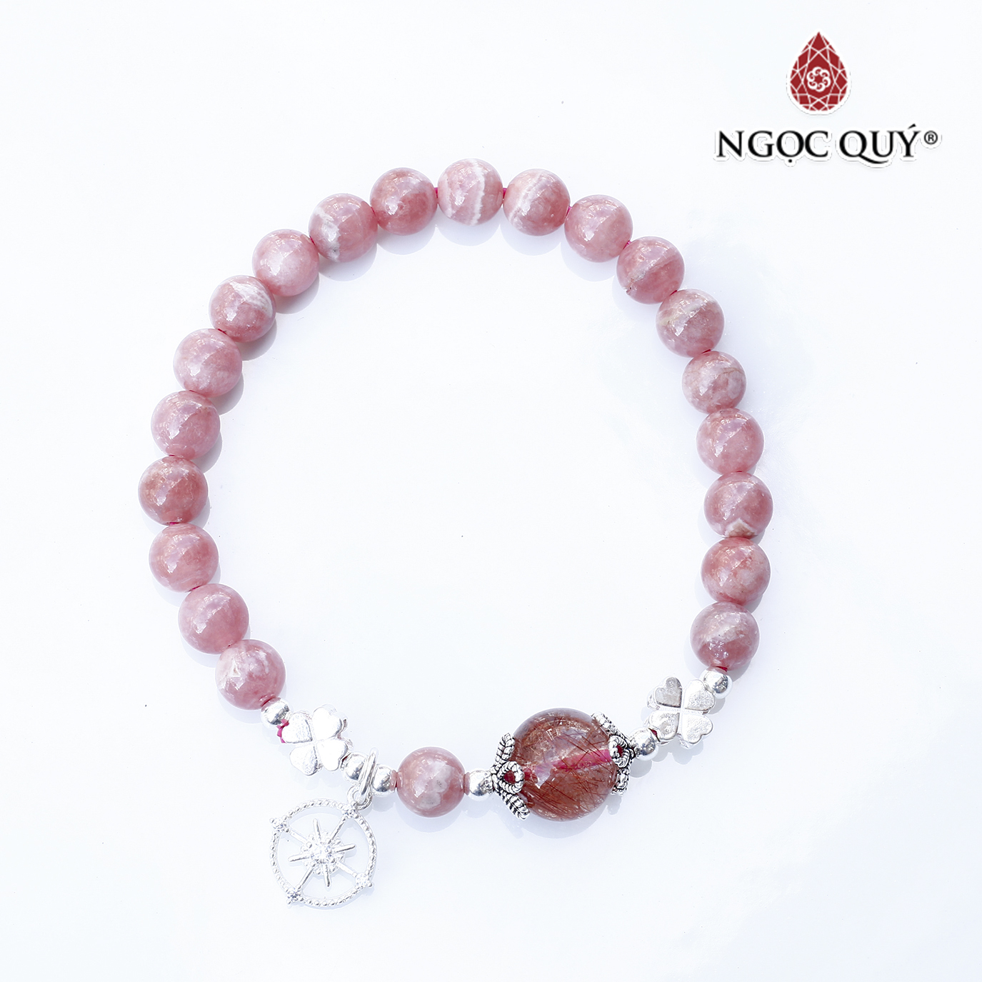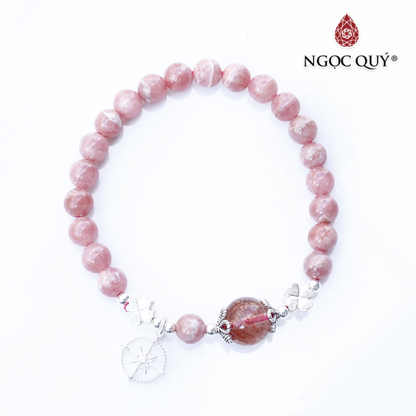 - Vòng Tay Thạch Anh Dâu Mix Tím Ngọc Charm Hoa Mặt Trời Ngọc Quý Gemstones VT109 mang màu hồng nhẹ nhàng, chứa năng lượng bổ trợ mạnh mẽ về tình duyên, cải thiện các