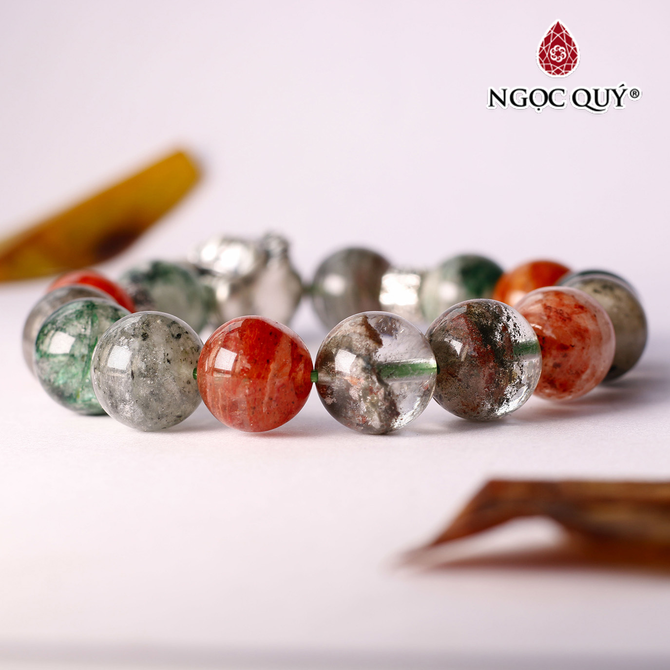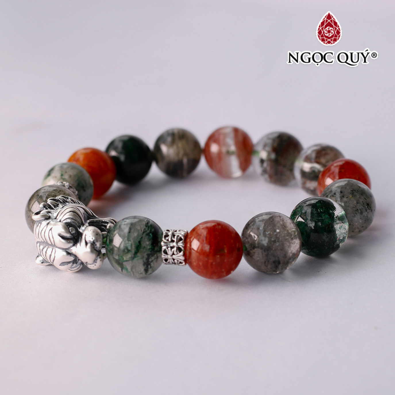 Vòng tay đá thạch anh ưu linh xanh phối charm hạt 12mm - Hợp Mệnh Mộc & Hỏa [ Ngọc Quý ]