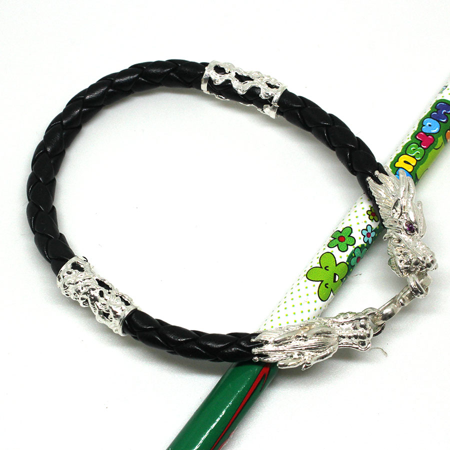 Vòng tay lắc tay nam da là một món đồ trang sức dành cho nam với chất liệu da thật loại tốt chất lượng tạo cho sản phẩm một phong cách rất là men - nam tính. Ngoài ra sản phẩm vòng tay da, lắc tay da còn được bọc bạc ta 925 họa tiết đầu và thân hình rồng tạo cho người đeo một phong cách rất ấn tượng. Bạc màu trắng được tạo kiểu cách trên nền da màu đen tạo lên sự nổi bật cho họa tiết đầu rồng