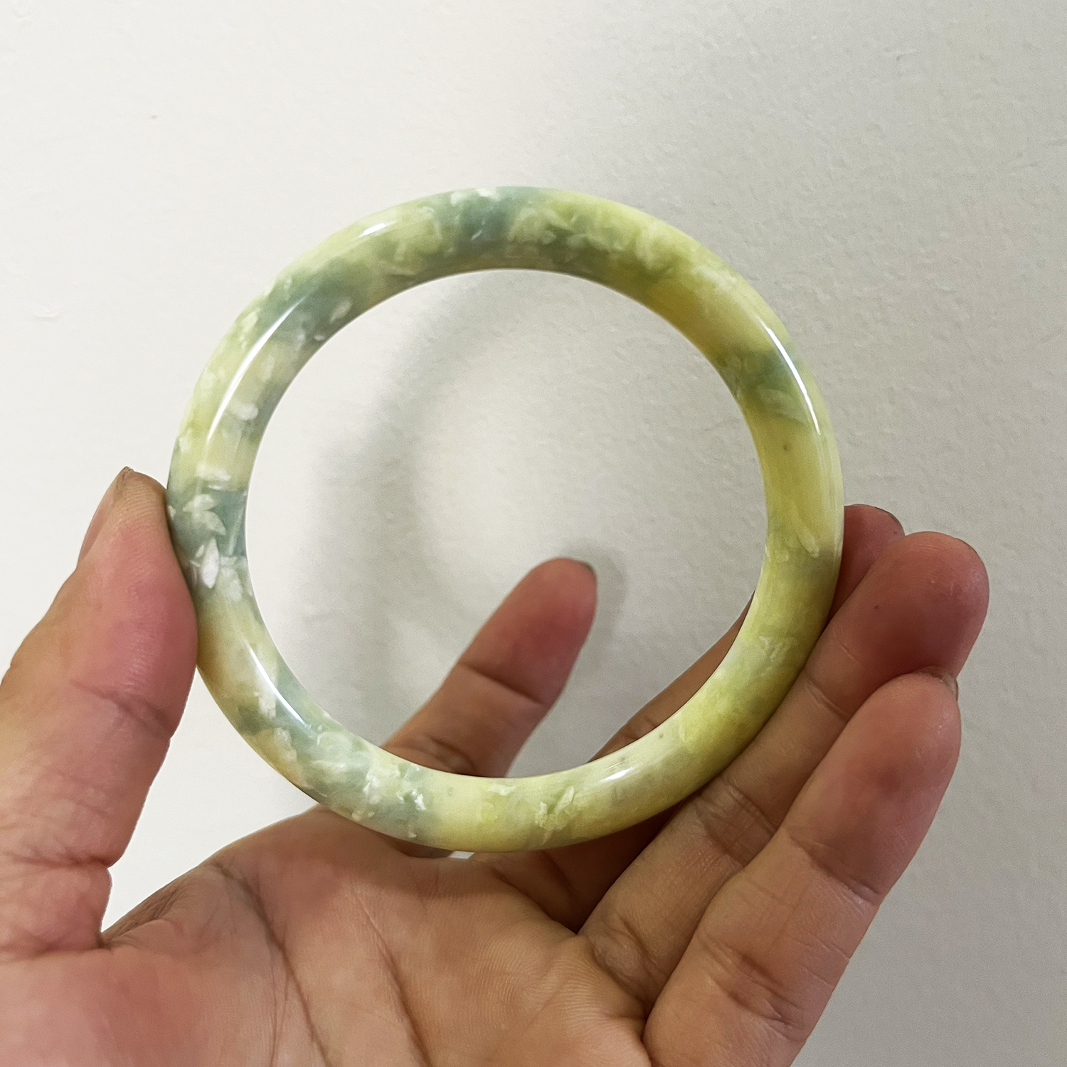 1. Chất liệu: Ngọc Serpentine 100% tự nhiên được khai thác và chế tác tại tỉnh Ybai 2. Kích thước: Size từ 5.0cm đến 7.0cm. Đo tay theo hướng dẫn bên dưới để biết nên