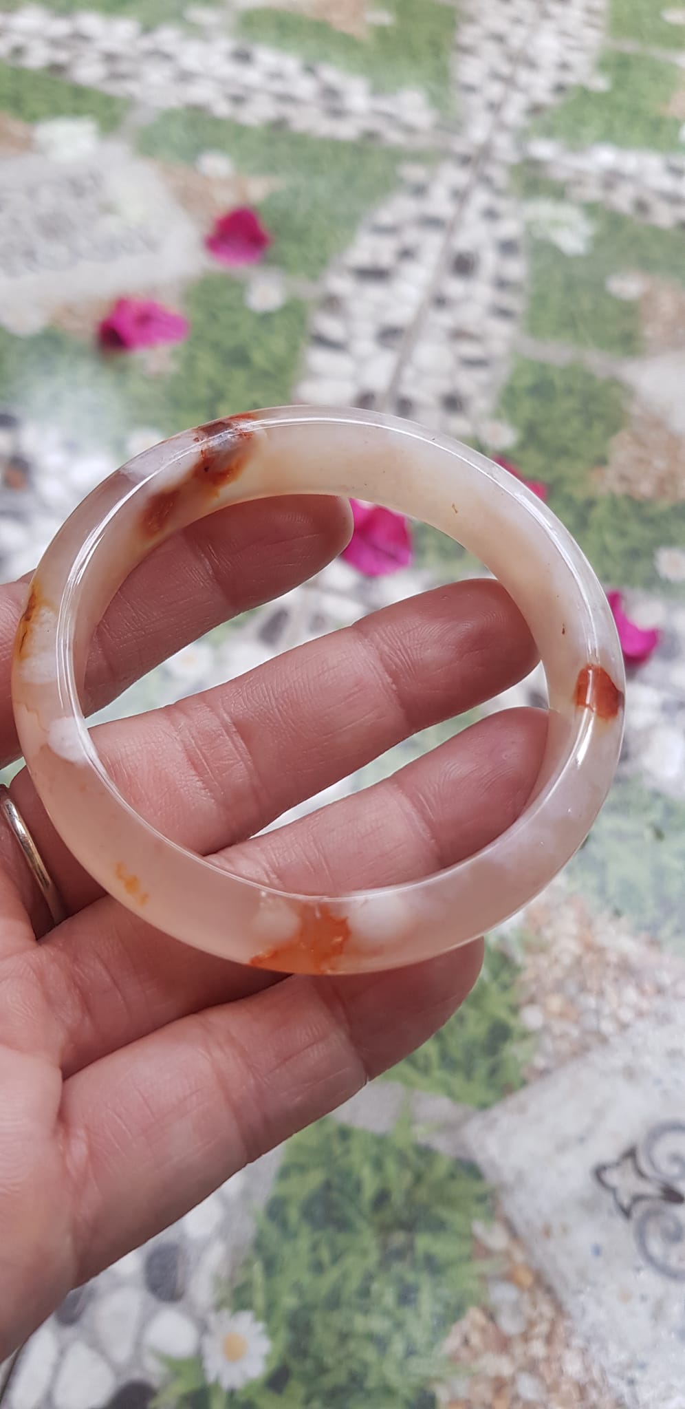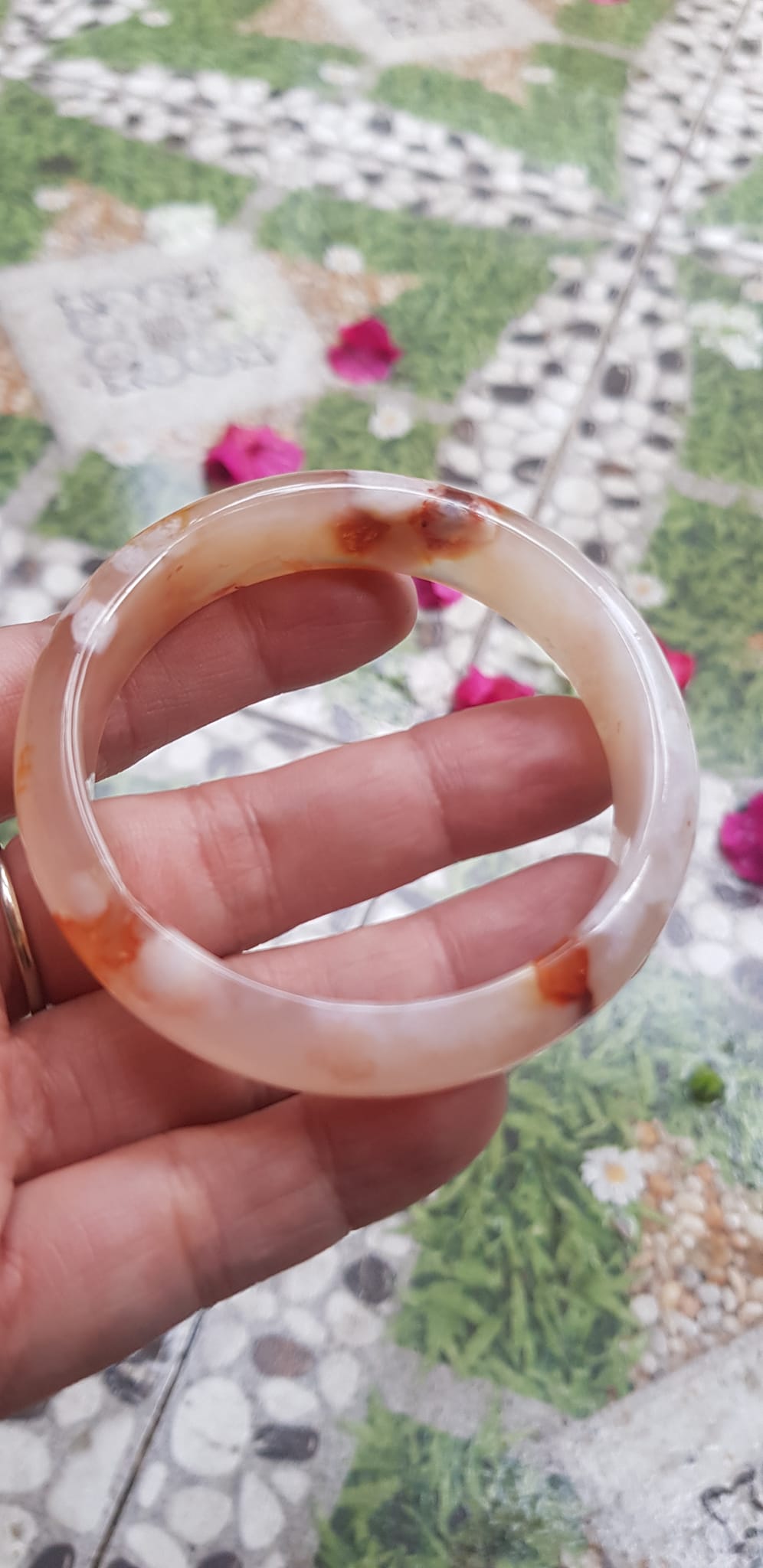 Vòng tay Nữ Bản Hẹ Mới Đá Mã Não Bông Tuyết Hồng nhẹ trắng trong bóng quá đẹp luôn ạ Ni 53mm x Cao 11mm x dầy 7mm Nữ Cân nặng 52kg - 55kg đeo