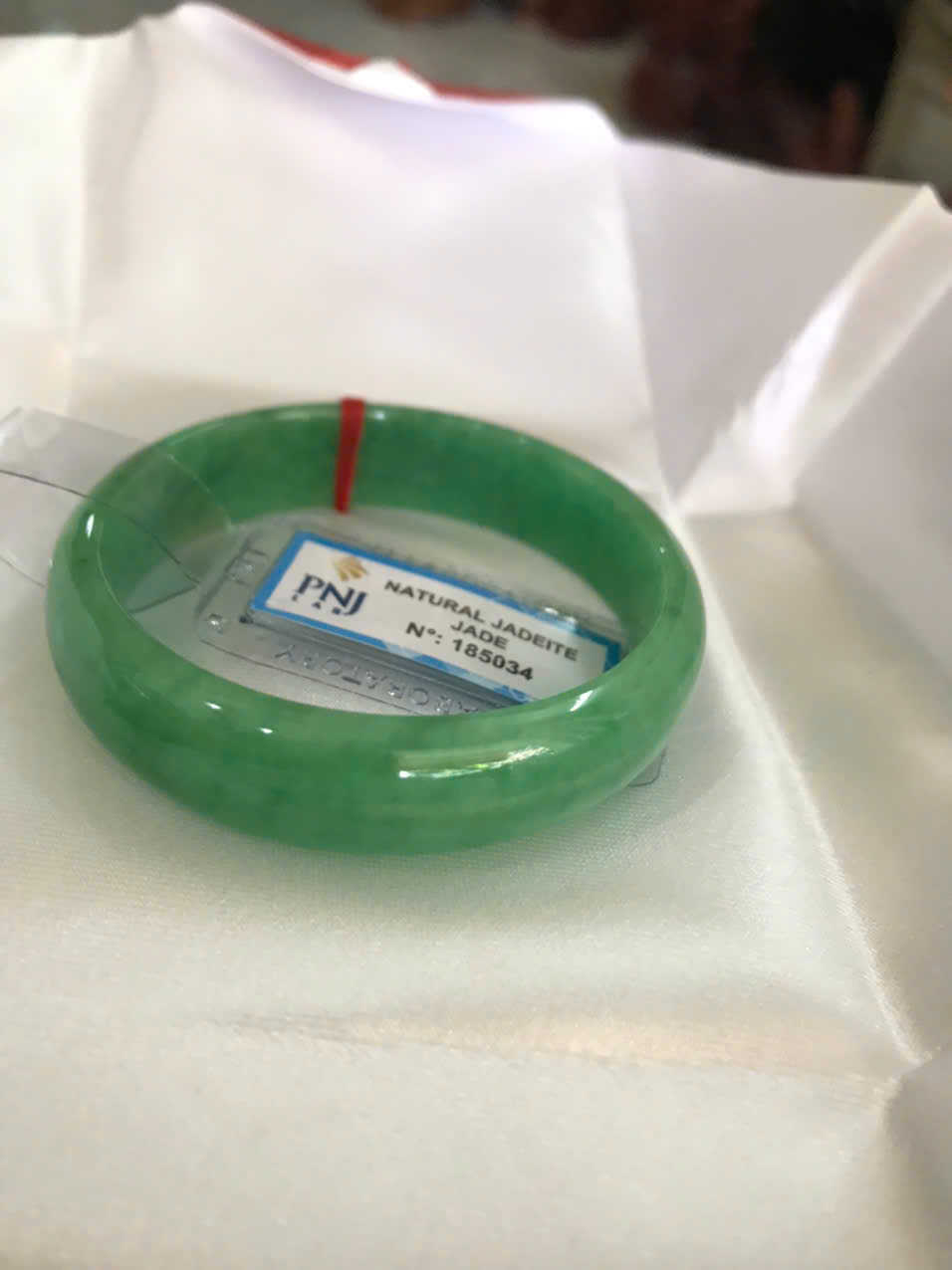 Vòng Tay Nữ Đá Ngọc Cẩm Thạch Tự Nhiên Bản Hẹ Sịn Đậu Lý Sao Ni 48mm Cao 12mm Dầy 6mm đã kiểm định kèm giấy chứng nhận P No 185034 Màu Xanh ngọc lý tươi bóng đều đẹp nữ tay nhỏ 35kg - 48kg ạ