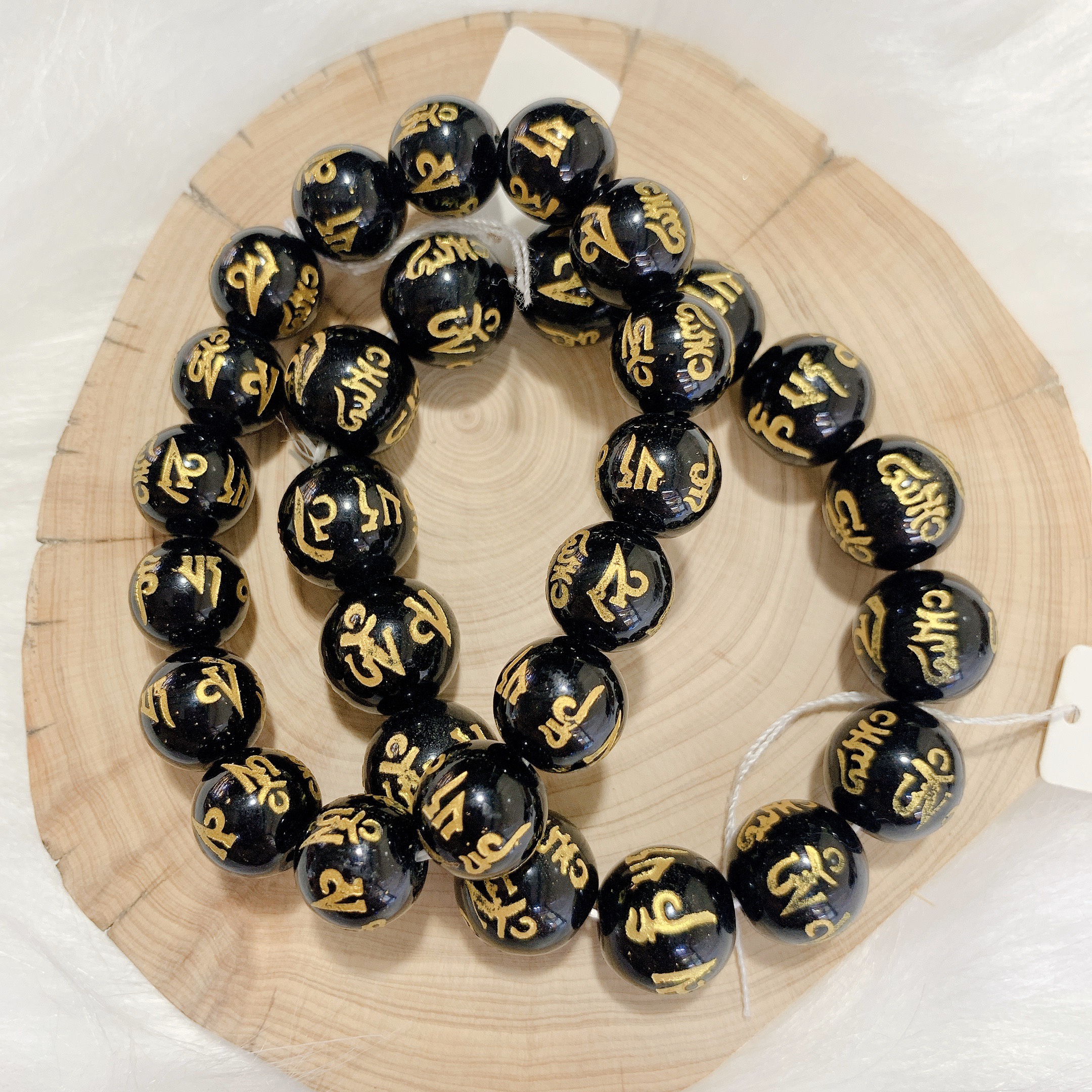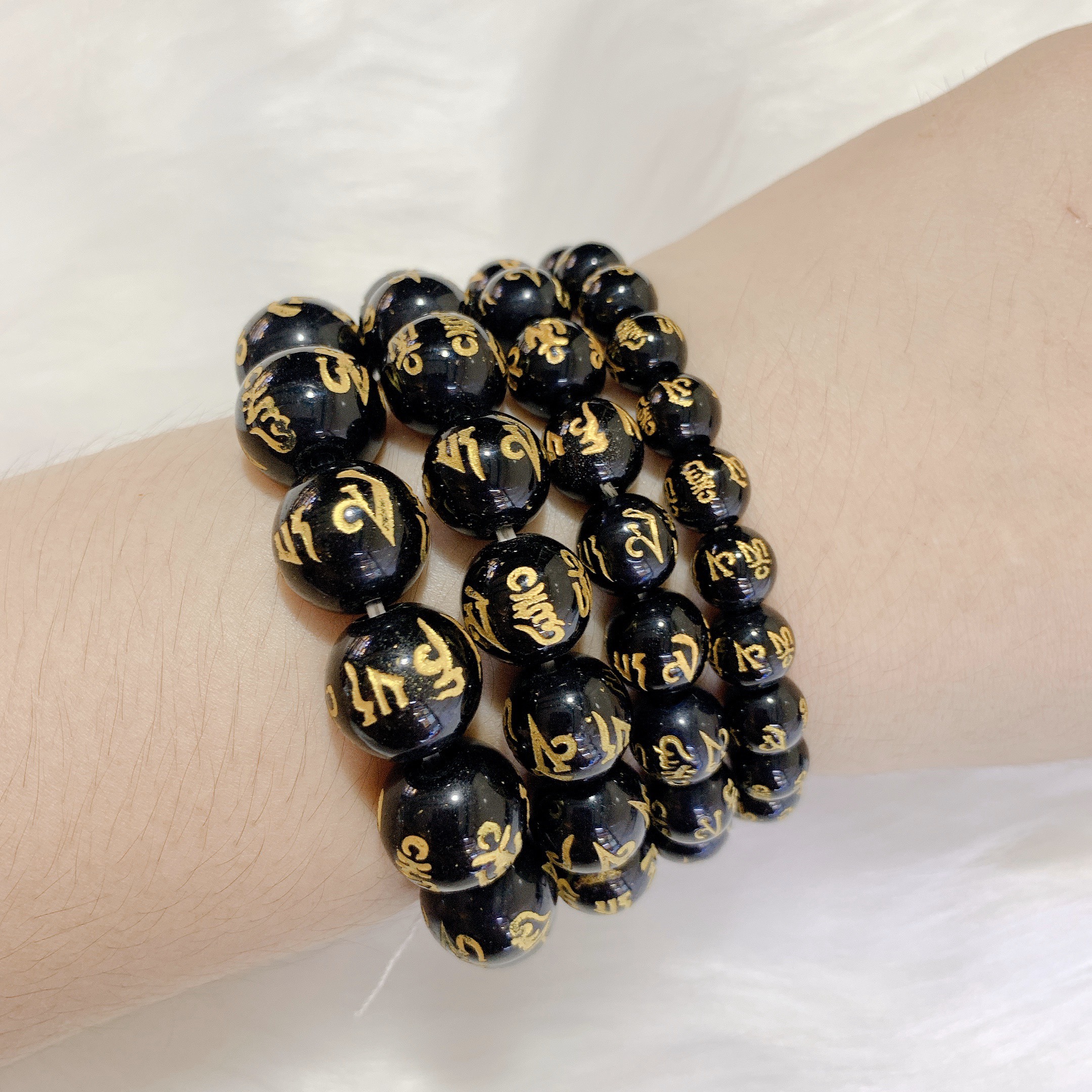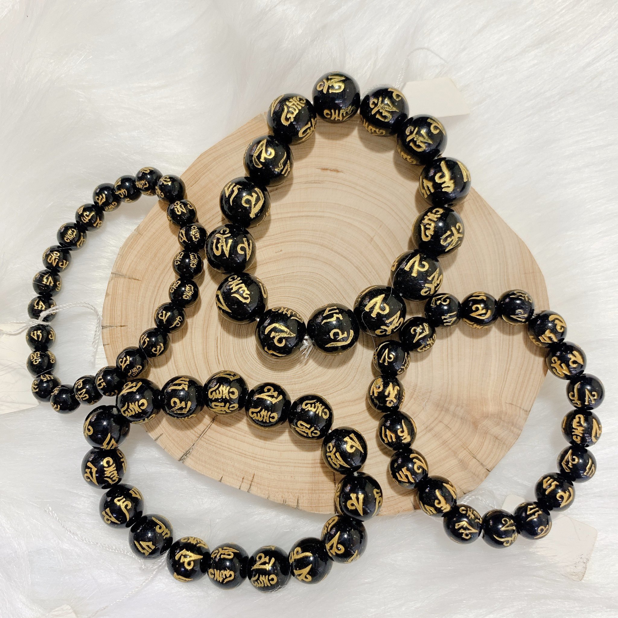 ✨Vòng tay Phong Thủy đá Poly Đen khắc Kinh Phật Thiên Nhiên Cao Cấp Đ.V.U0025 (Có 04 Ly)